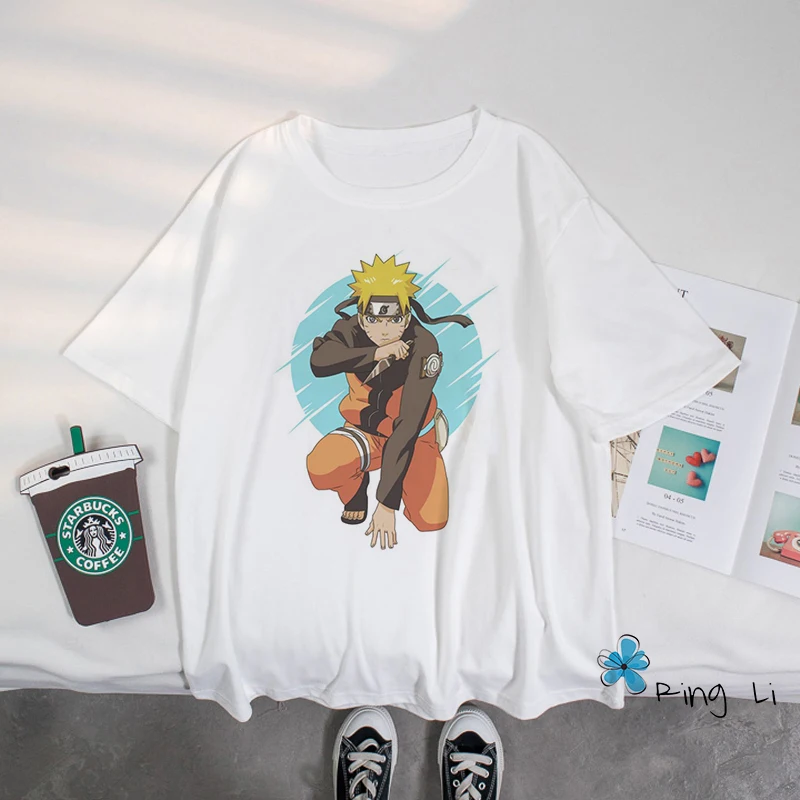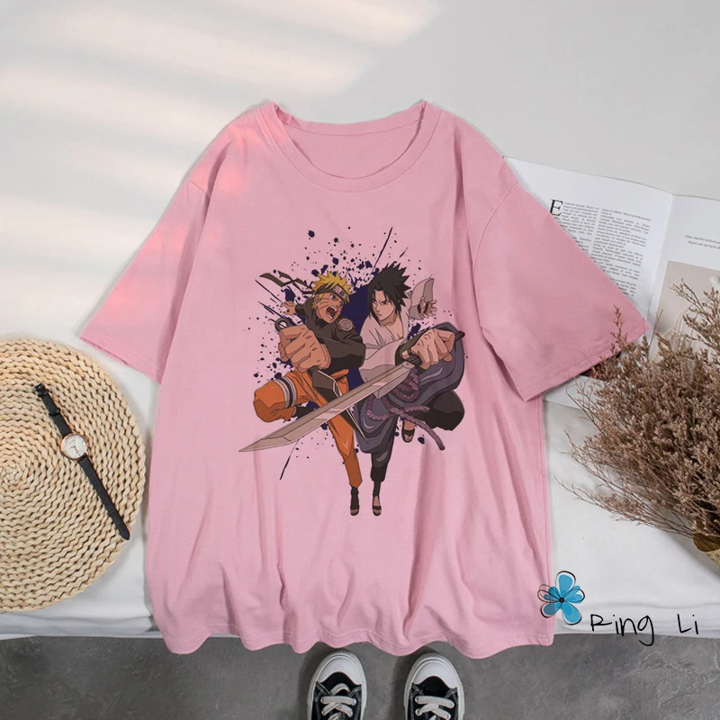 Женская футболка, женская футболка, уличная одежда в стиле Харадзюку, одежда из японского аниме, свободная футболка с принтом Какаси и Саске Акацуки в стиле панк