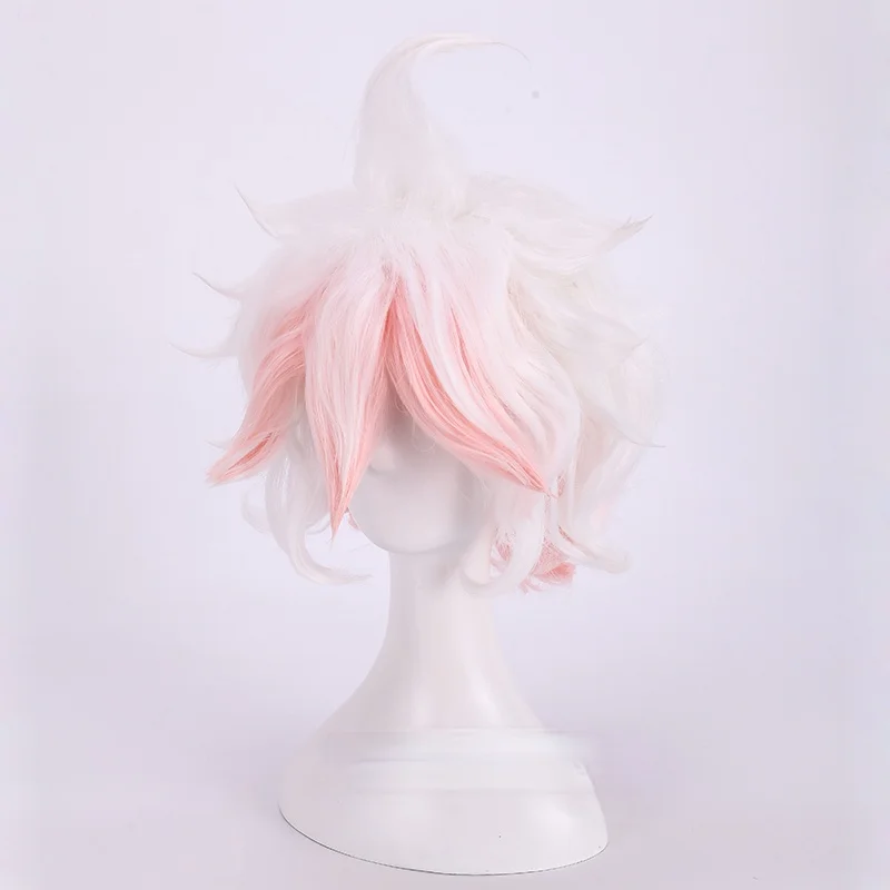 Парик для косплея Danganronpa Dangan Ronpa Nagito Komaeda, парик с коротким градиентом, белый, розовый, вьющиеся термостойкие синтетические волосы, парик + парик