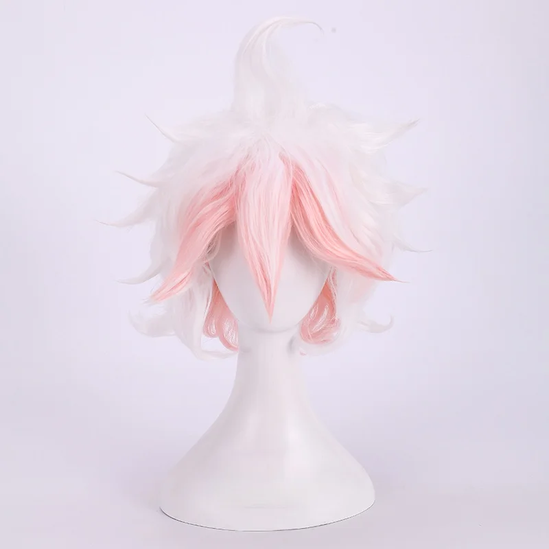 Парик для косплея из Danganronpa Dangan Ronpa Nagito Komaeda, термостойкий синтетический с короткими вьющимися волосами и шапочкой, с переходом цвета, белый, розовый