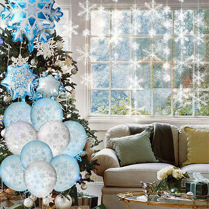 Новый Рождественский набор воздушных шаров, украшение для вечерние, снежинка, резиновые шары