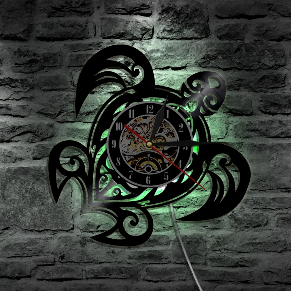 Морская черепаха настенные часы в форме морской Животные виниловых пластинок настенные часы морские черепахи силуэт Пляж Свадебный декор 3D светодиодный Ночной светильник подарок