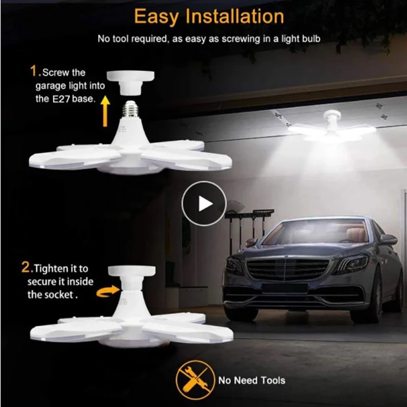 -Просты в установке: светодиодный гараж Потолочный светильник-просты в установке, просто прикрутил его в светильник разъем (в обычном режиме, обычный Американский светильник гнездо), и он был таким ярким. Это также поставляется с удлинителем, позволяющим вам сбросить светильник на несколько дюймов вниз от розетки.
