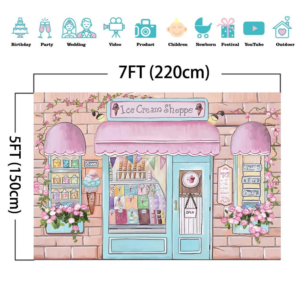 Мороженое Shoppe фон цветок с зеленными листиками для маленьких детей портретный фон для фотосъемки с изображением День рождения декоративный фон для студийной фотосъемки