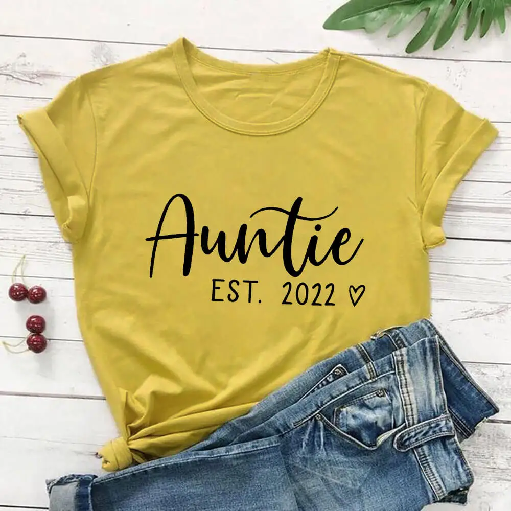 Тетушка Est 2022 100% хлопчатобумажная Женская футболка новый тетей для того, чтобы быть рубашка повышен до тетушка Повседневная летняя футболка с короткими рукавами Топы, подарок для сестры