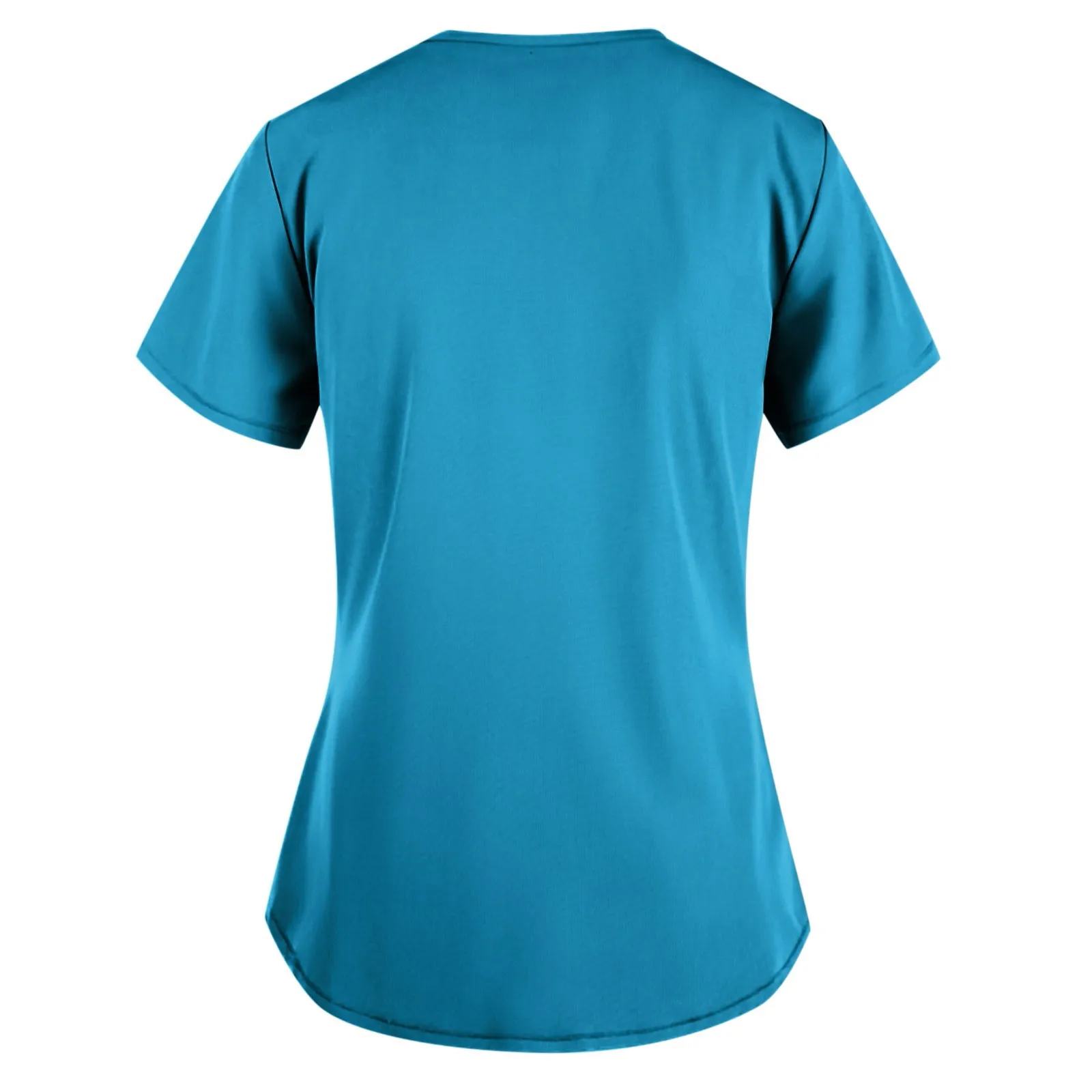 Женская рабочая форма, блузка с карманами и принтом ЭКГ, топы с коротким рукавом и V-образным вырезом, униформа медсестры, зоомагазин, рабочая одежда, туника A50