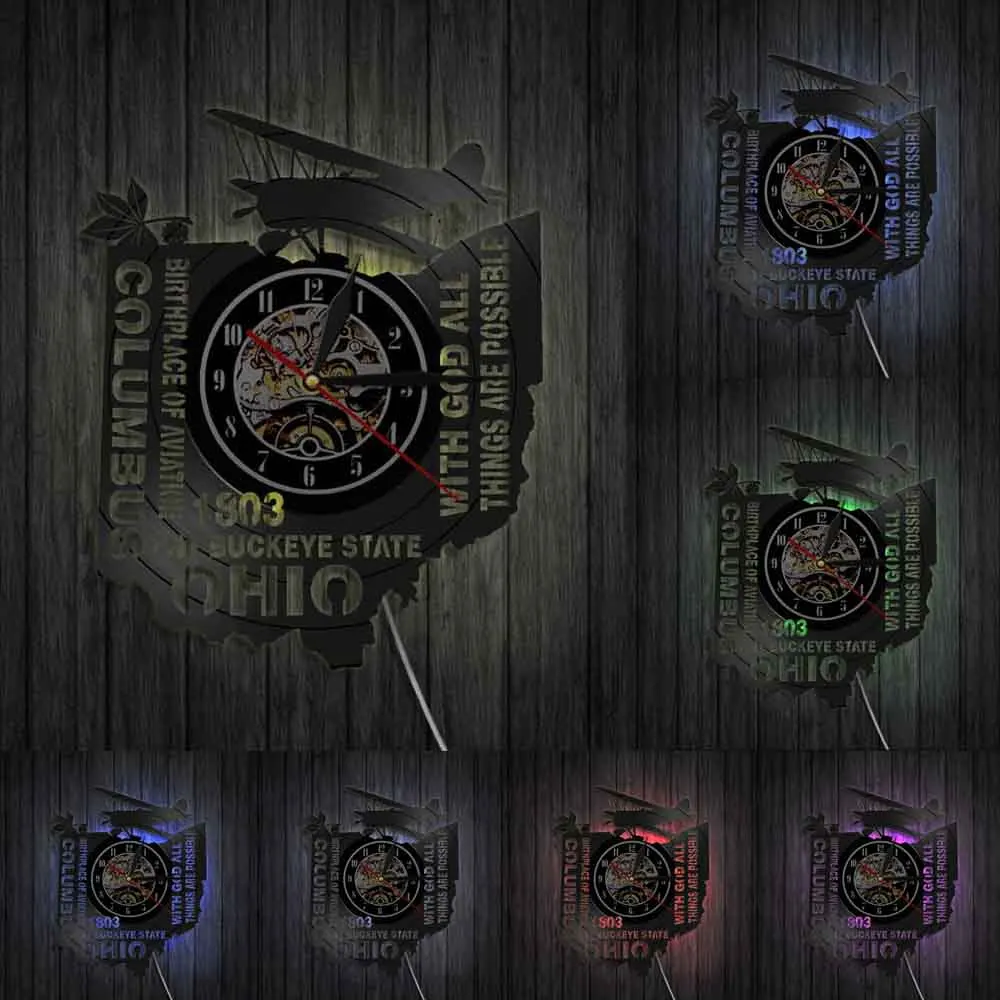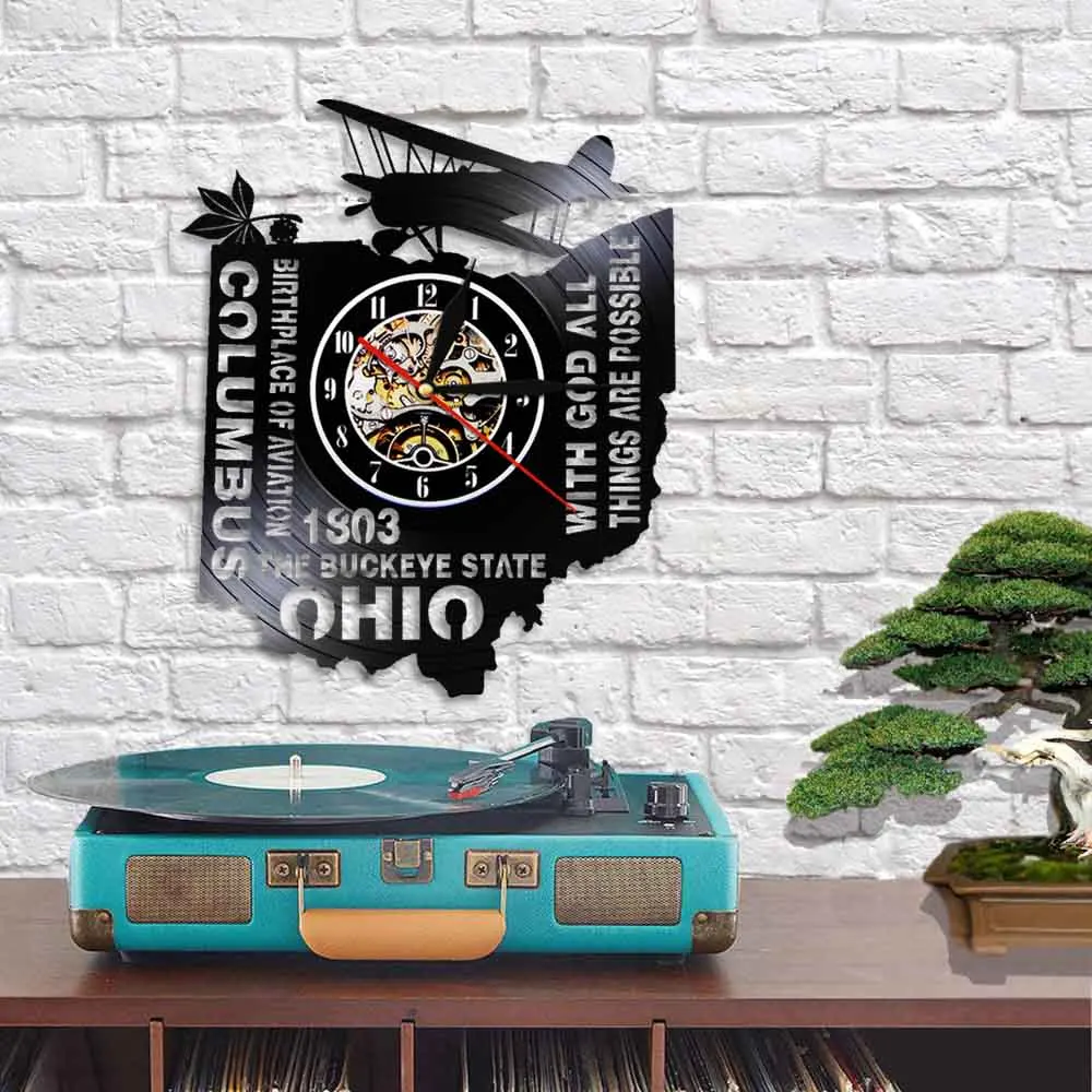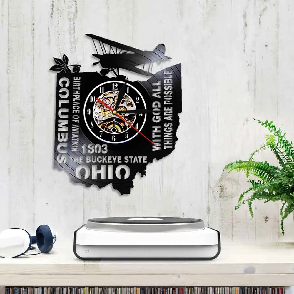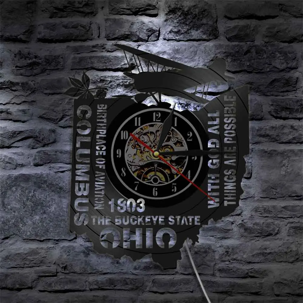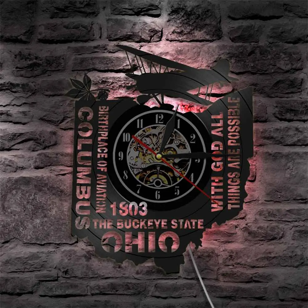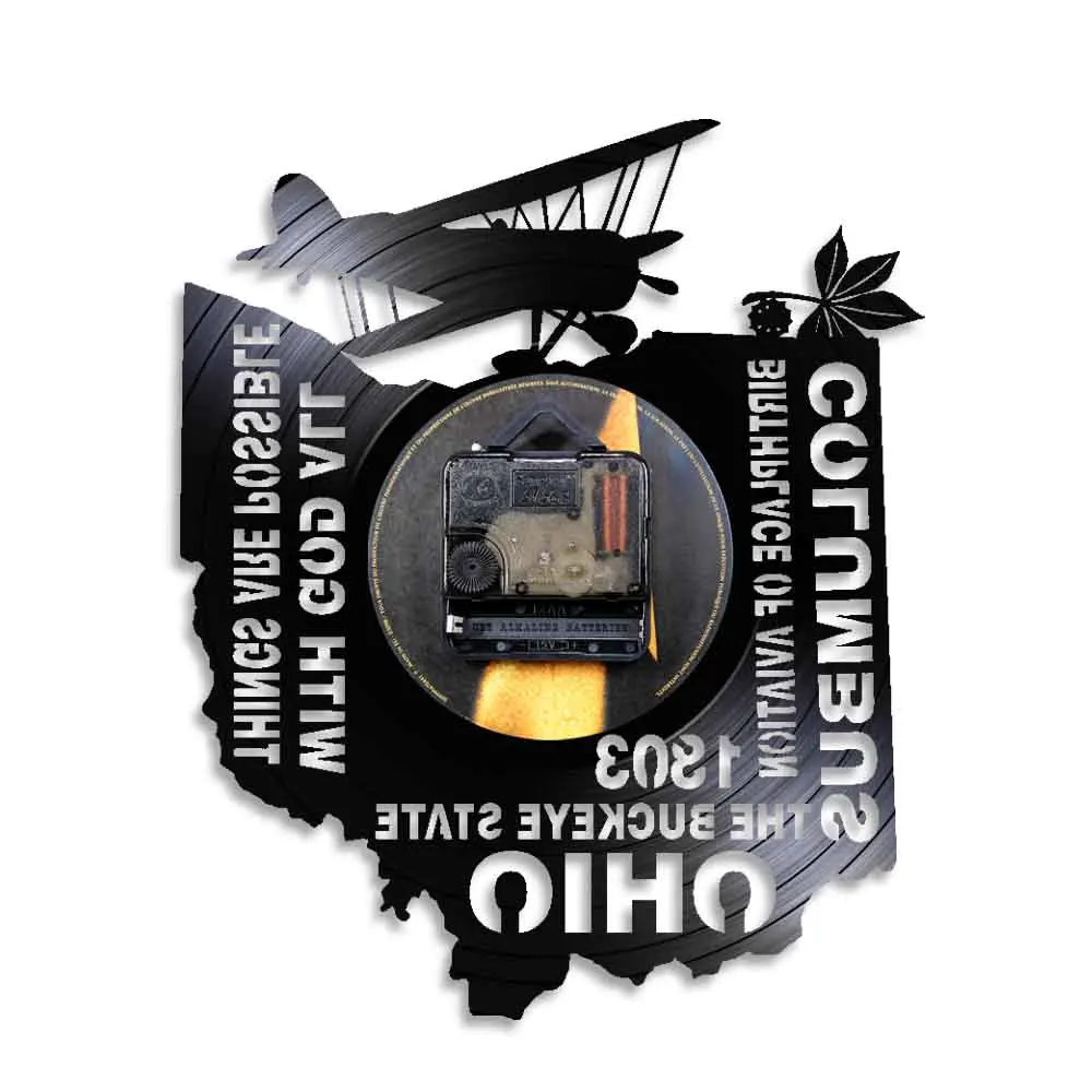 США, Огайо, государственные настенные часы, место рождения авиации, самолет, настенное искусство, колонна, городской пейзаж, буккейные государственные часы, настенные часы