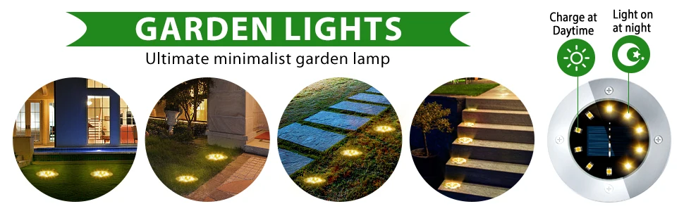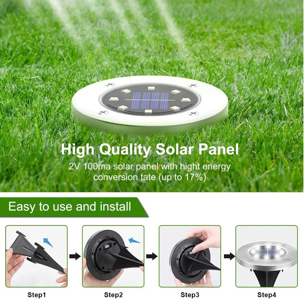 Простая установка и автоматическая работа-просто нужно всего 15 ~ 20 секунд, чтобы установить светильник заземления на вашем месте желания с шипами. Поместите свои наружные светильники в место, где они могут быть подвержены воздействию максимального солнечного света в течение дня.