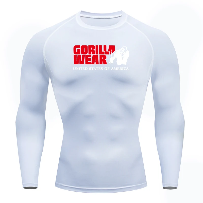 Мужская компрессионная футболка для бега, фитнеса, обтягивающая Спортивная футболка Gorilla, тренировочные футболки для бега, спортивная одежда, Быстросохнущий Рашгард