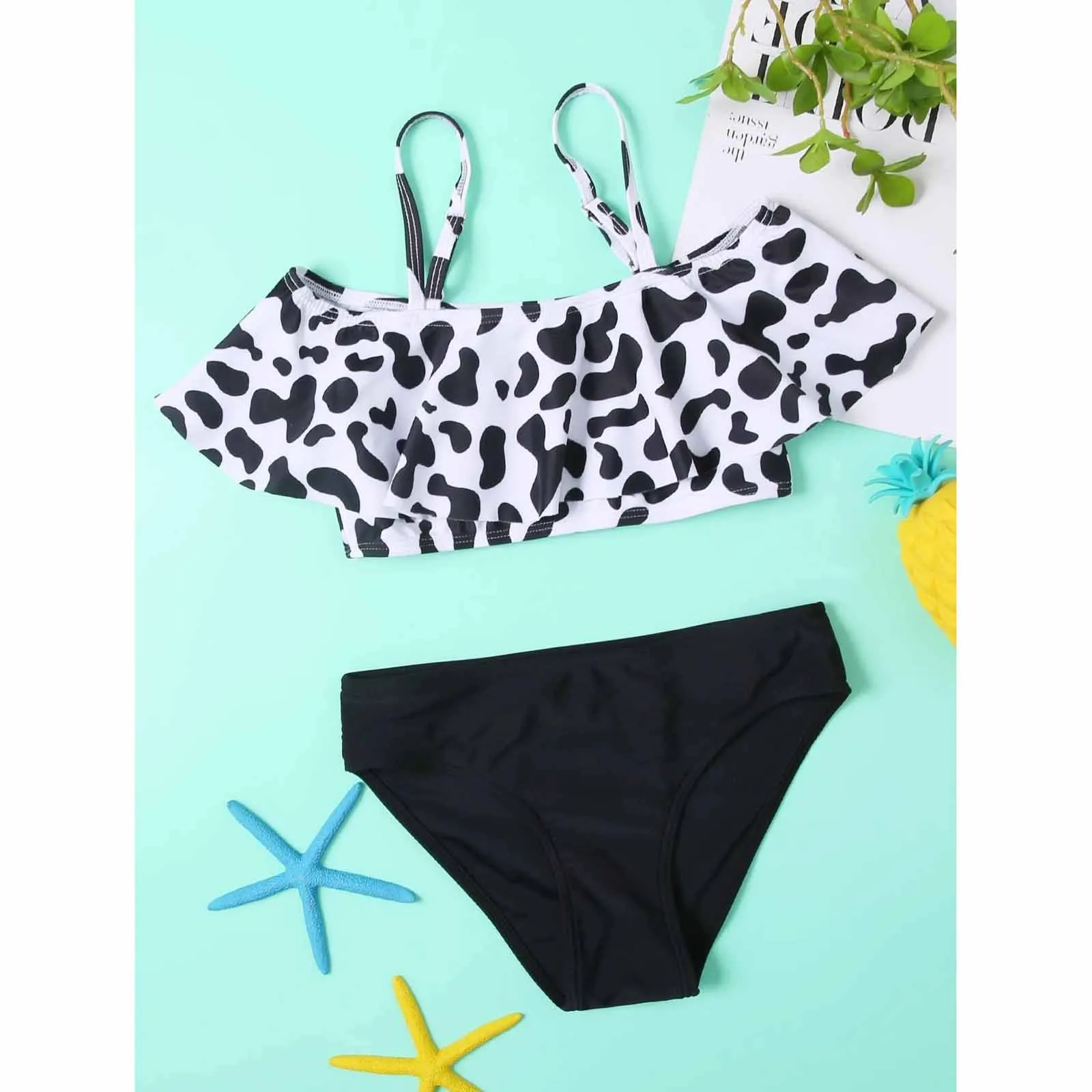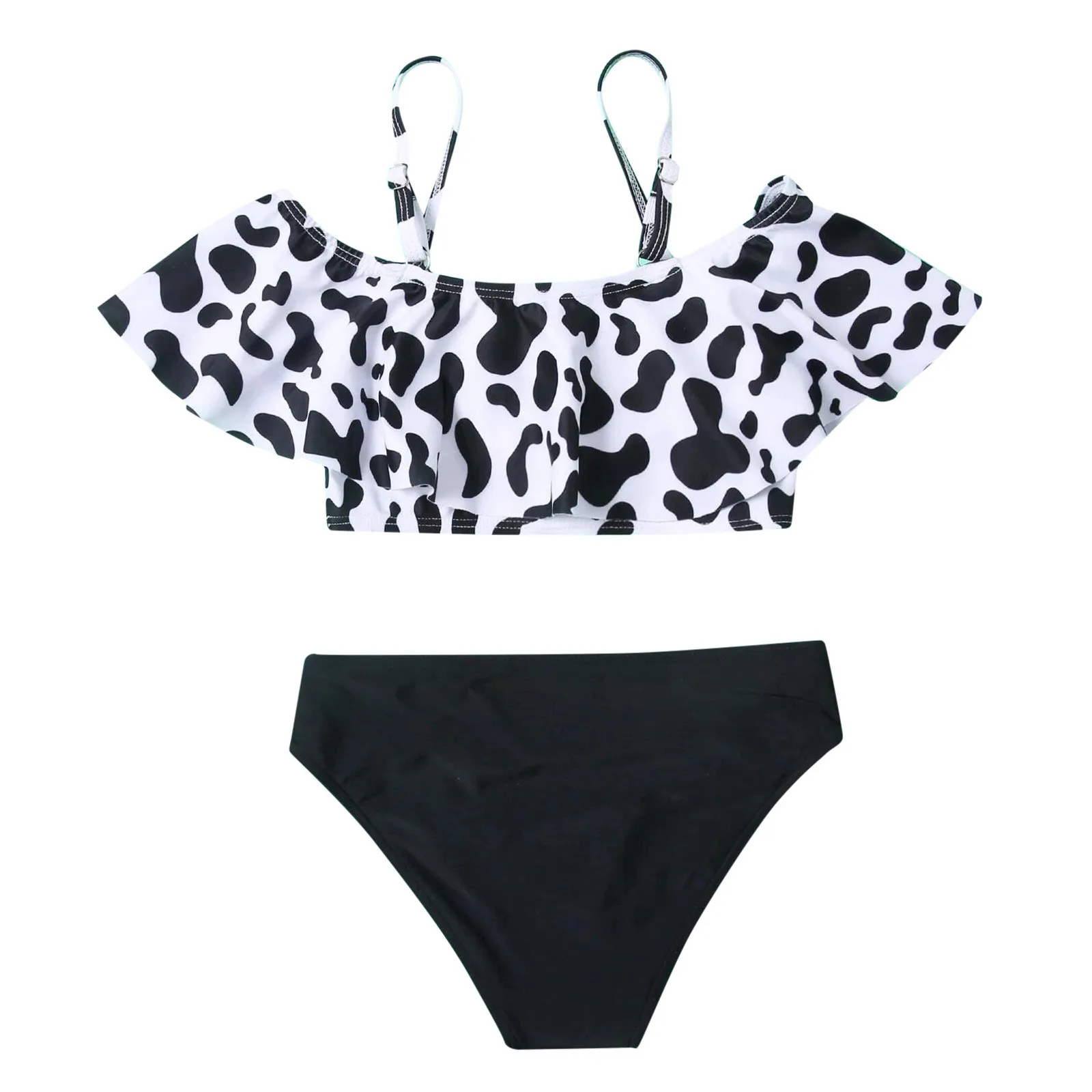 Купальник детский с принтом молочной коровы, комплект бикини с оборками, повседневный пляжный купальный костюм для девочек, пляжная одежда, лето 2021