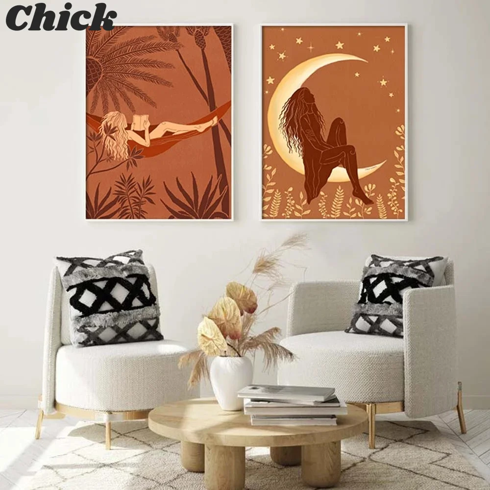Модный женский холщовый постер для платья, скандинавский настенный ...