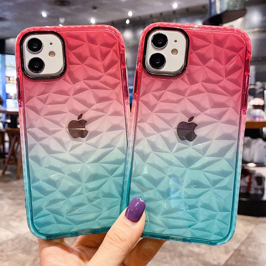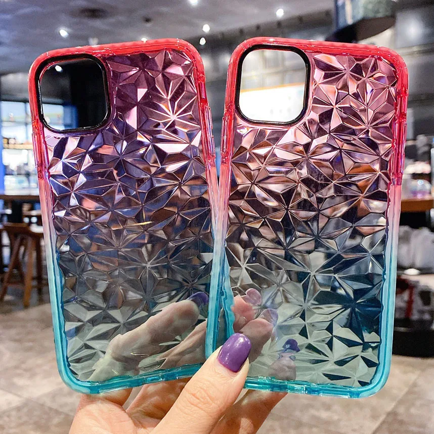 Чехол с 3D градиентом и алмазным рисунком для iPhone 11, прозрачный...