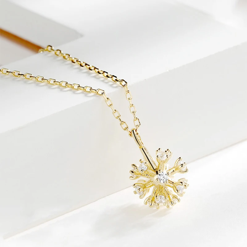 Женское серебряное ожерелье ANENJERY, Одуванчик с цирконием, цепочк...
