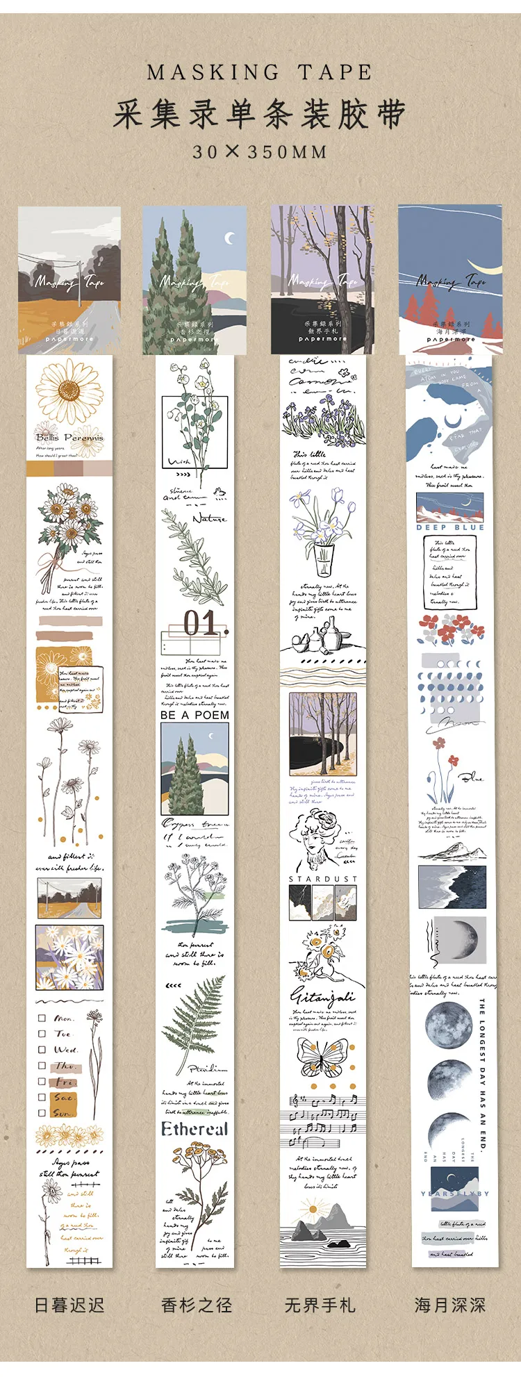 Винтажные длинные наклейки растения цветы декоративный коллаж дневник в стиле Скрапбукинг планировщик DIY пользовательские наклейки s Канцтовары