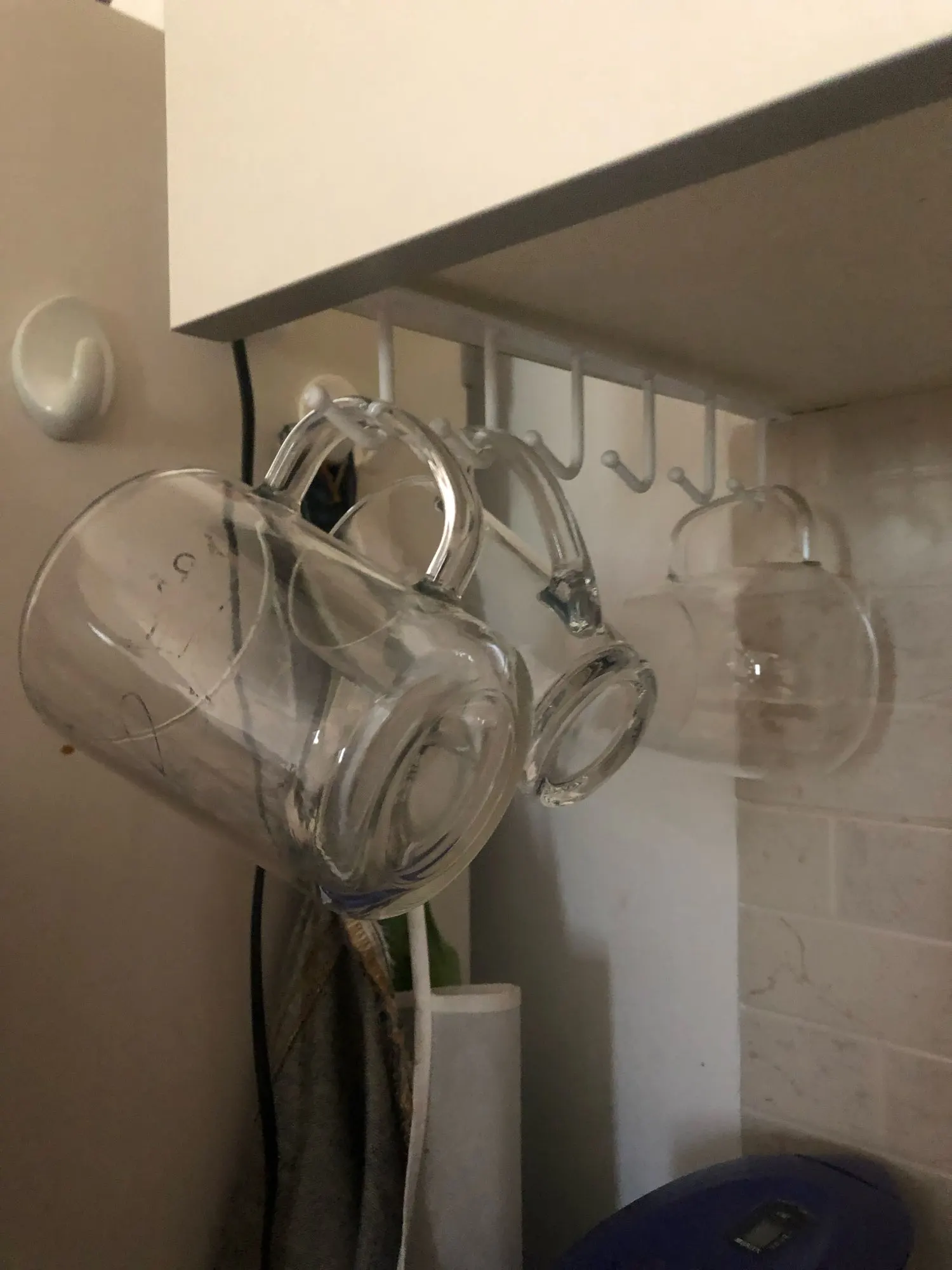 Не функционально. Крючки стоят плотно друг другу, кружки стучат о друг друга. Если заполнять все крючки, то металл сильно отгибается под тяжестью.