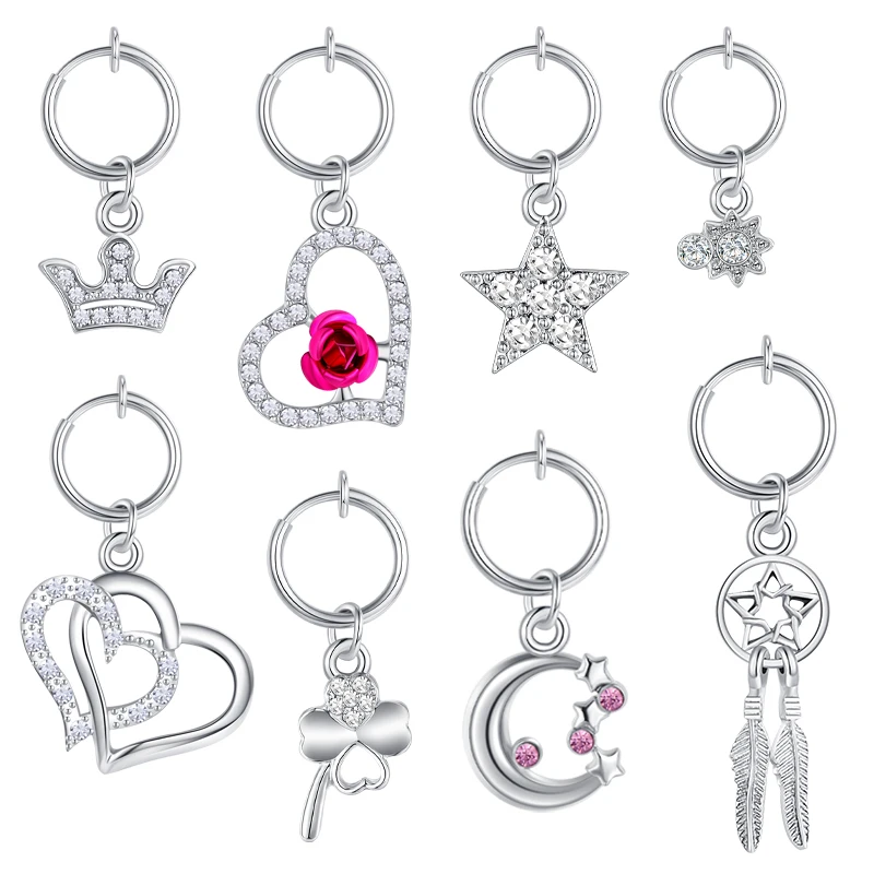 Описание товара: 1 шт. зажим для колец для пупка с разными подвесками;