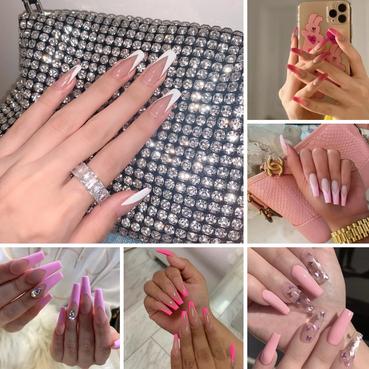 Новый градиент Стиль матовая пленка с полным покрытием длинный балетные накладные ногти 2020 тренд ногтей Французский маникюр инструменты 24 шт.