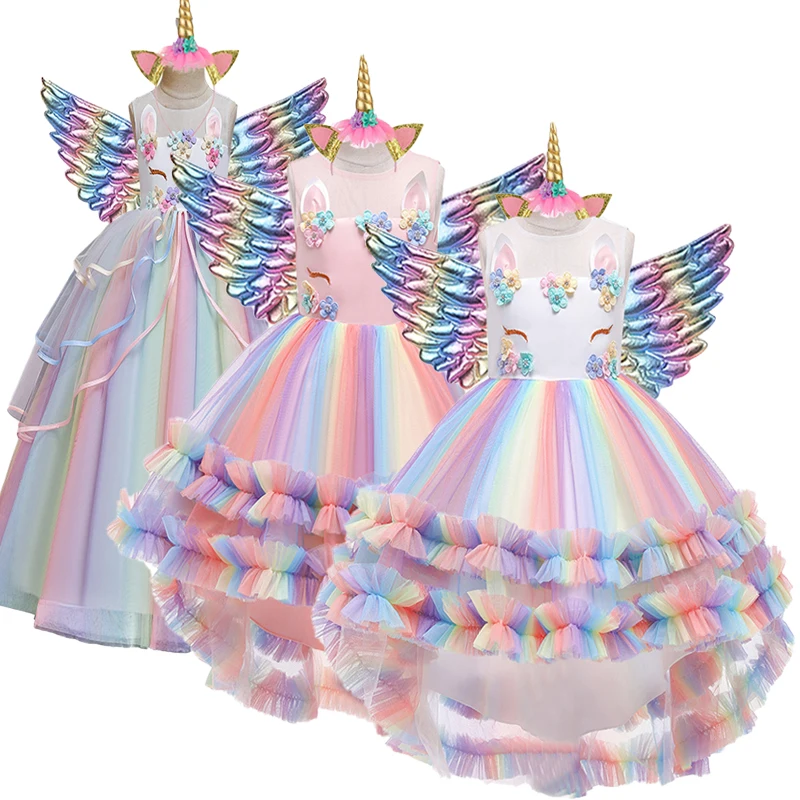 Платье пышное женское свадебное вечернее, Длинное разноцветное Сетчатое платье-торт, в виде единорога, принцессы, праздничное платье для выступлений, 2021