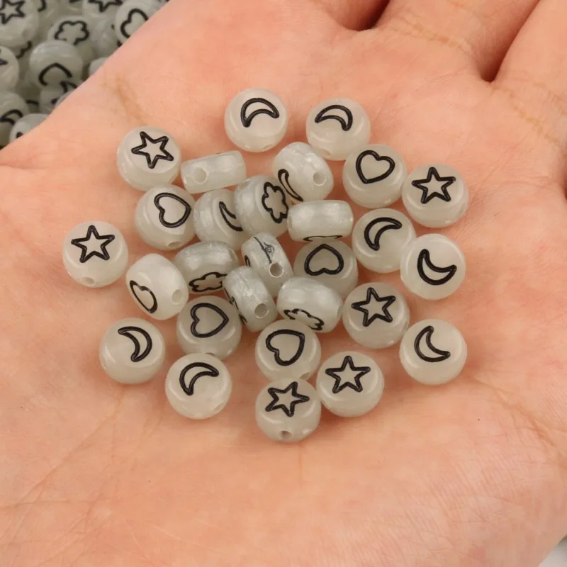 4*7 мм смешанный светящийся Луна Звезда сердце круглые акриловые бусины плоские светящиеся Свободные Spacer Бусины для самостоятельного изготовления ювелирных изделий браслет ожерелье