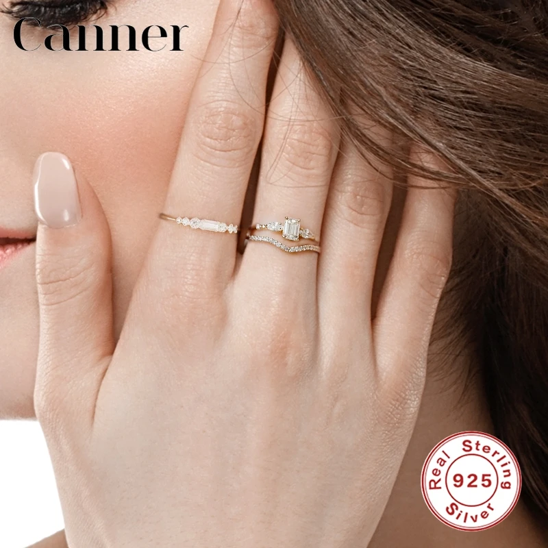Женское кольцо на палец Canner, кольцо из стерлингового серебра 925 пробы с фианитом, ювелирные украшения для помолвки, свадьбы, 2021