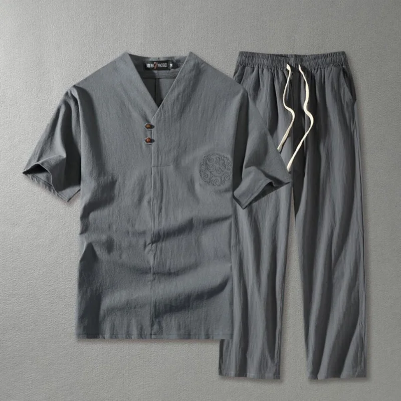 Костюм спортивный мужской из двух предметов, льняная футболка, Модный комплект в китайском стиле, большие размеры 8XL 9XL, лето 2021