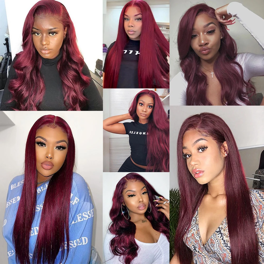 Пряди натуральных волос красного цвета, 99j, волнистые, бразильские, влажные, для наращивания волос