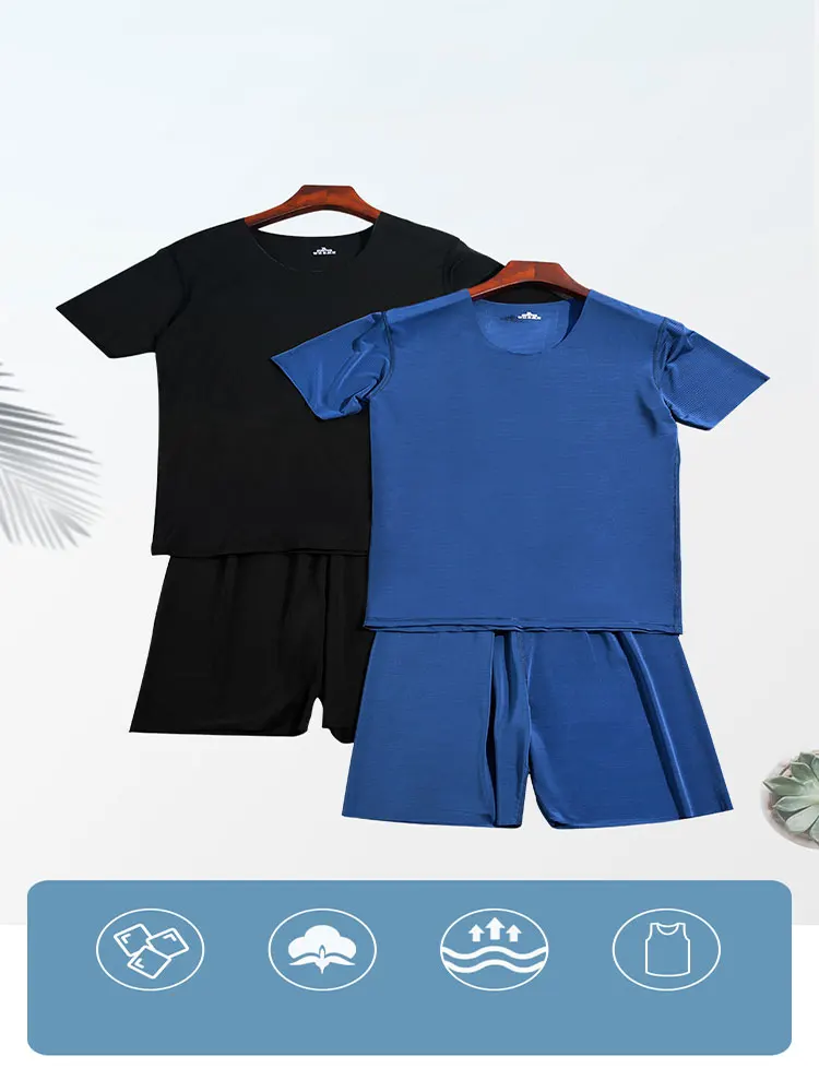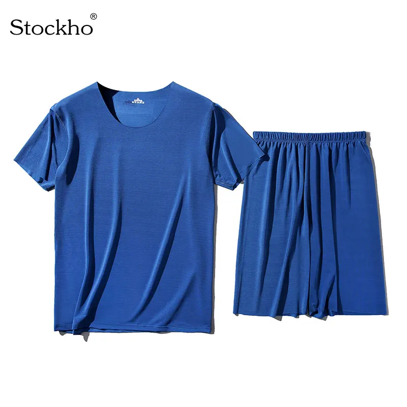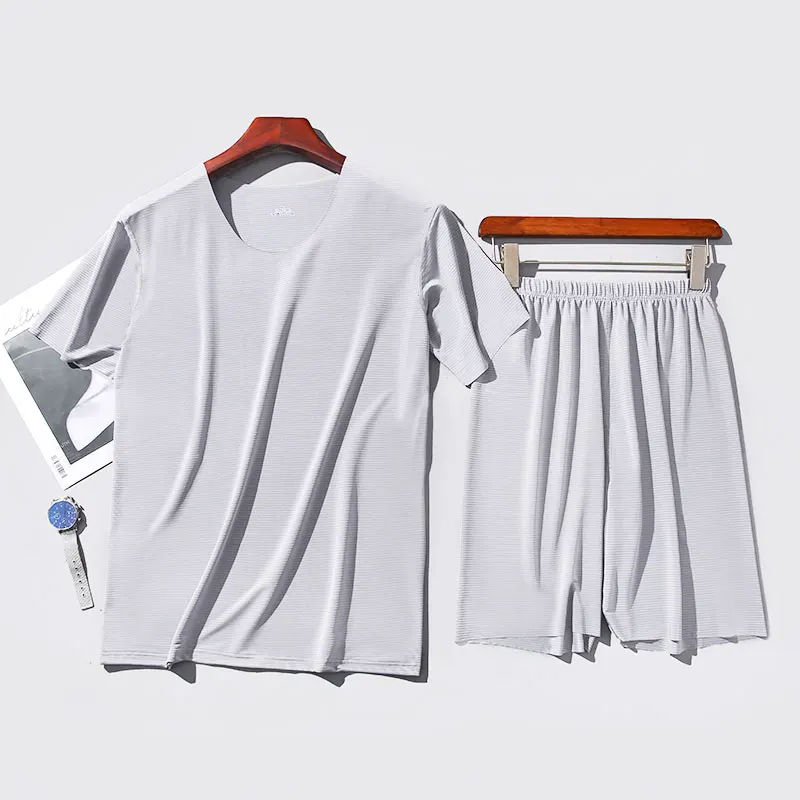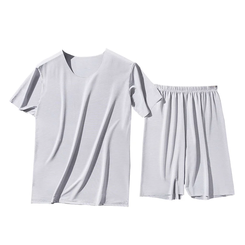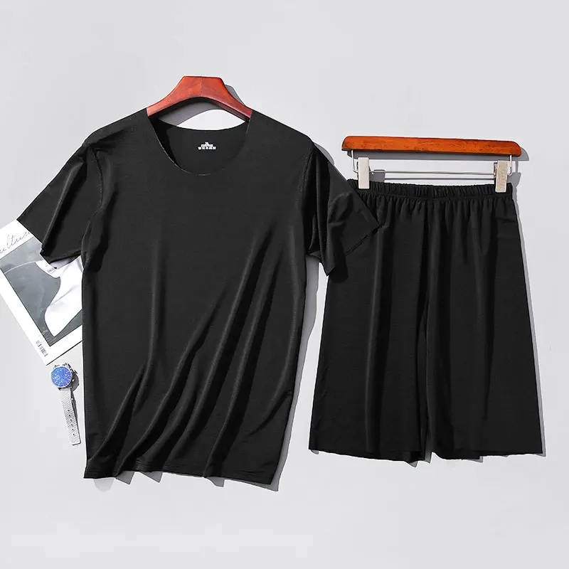 Пижамный комплект мужской летний из вискозы, шорты с коротким рукавом, штаны 5 минут без швов, футболка с круглым вырезом, нижнее белье