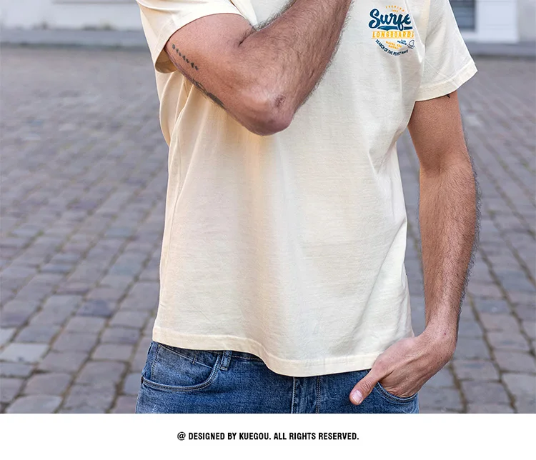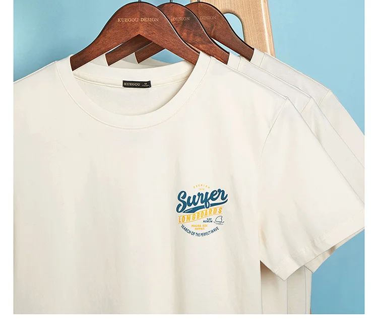 Мужская хлопковая футболка KUEGOU, летняя футболка с коротким рукавом, с буквенным принтом, уличная одежда больших размеров, 100%