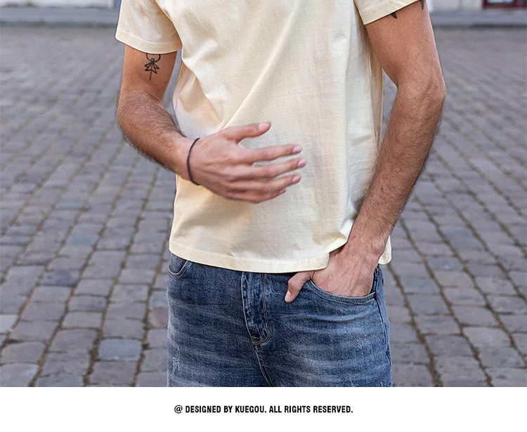 Мужская футболка с коротким рукавом KUEGOU, однотонная Базовая футб...