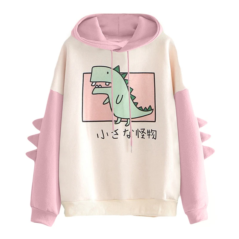 Модная женская толстовка, Повседневная Толстовка с длинным рукавом и принтом динозавра, толстовка, топы