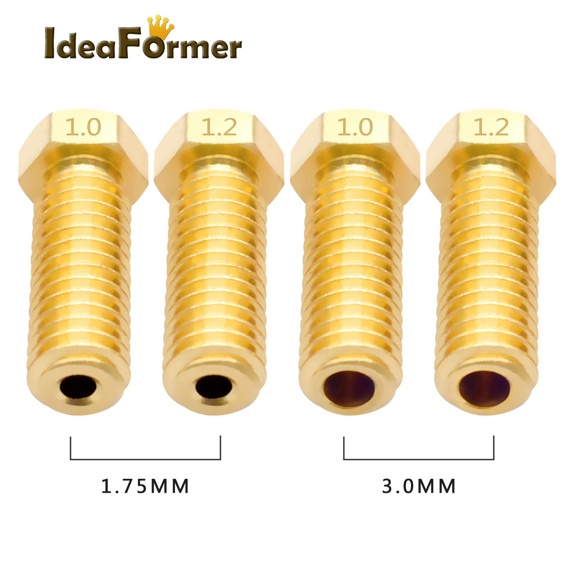 Латунная Форсунка для 3D-принтера Volcano, Форсунка для экструдера E3D Volcano Hotend M6 0,40,60,81,01,2 мм для нити 1,753,0 мм