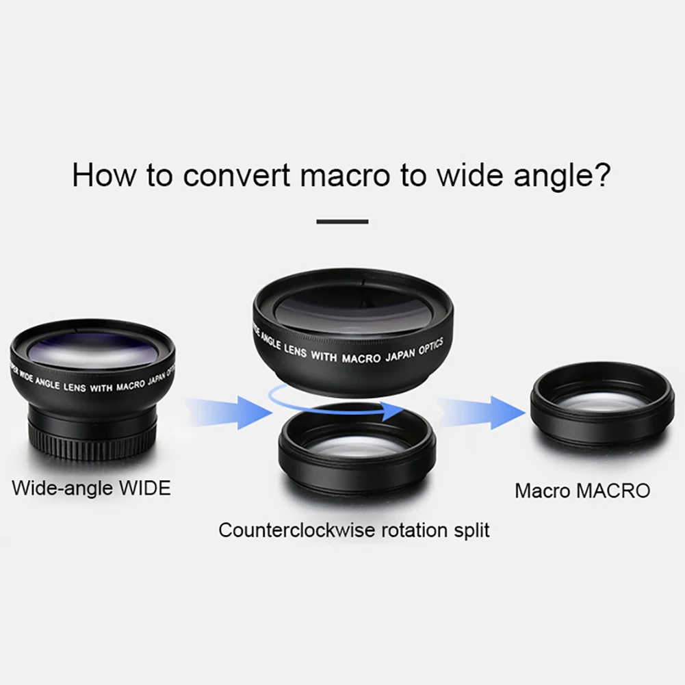 2 в 1 объектив 0.45X широкоугольный и макрообъектив для профессиональной HD камеры телефона