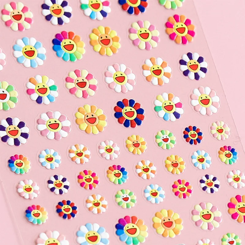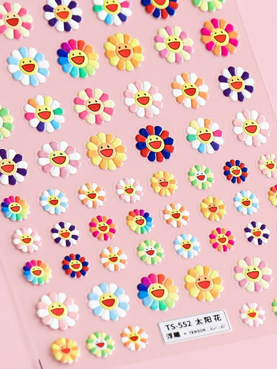 Рельефные красочные наклейки для ногтей 5D в виде подсолнуха для женщин, ручное украшение, простые наклейки сделай сам, наклейки, новинка 2021, Маникюр для дизайна ногтей