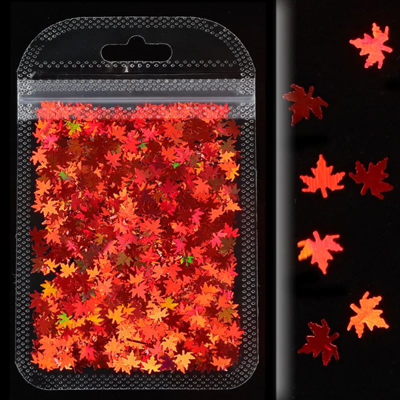 Блестки для ногтей с кленовыми листьями, хлопья, оранжевые, розовые...