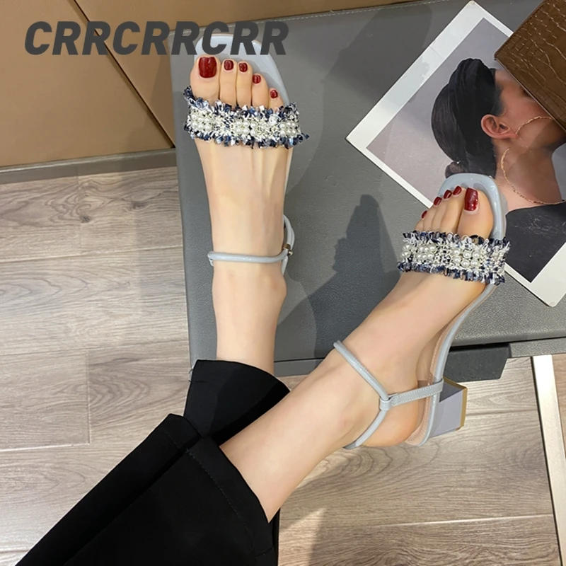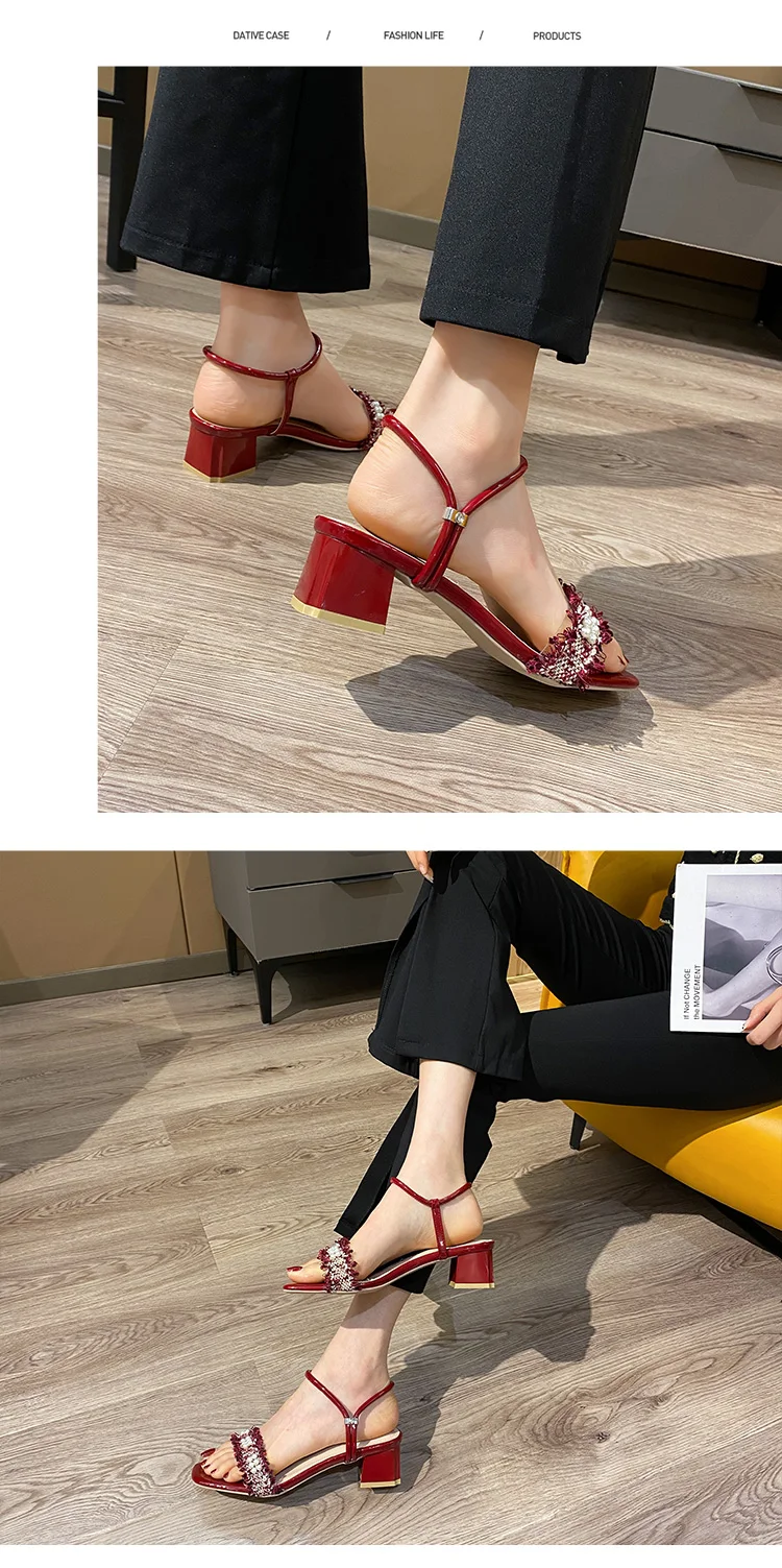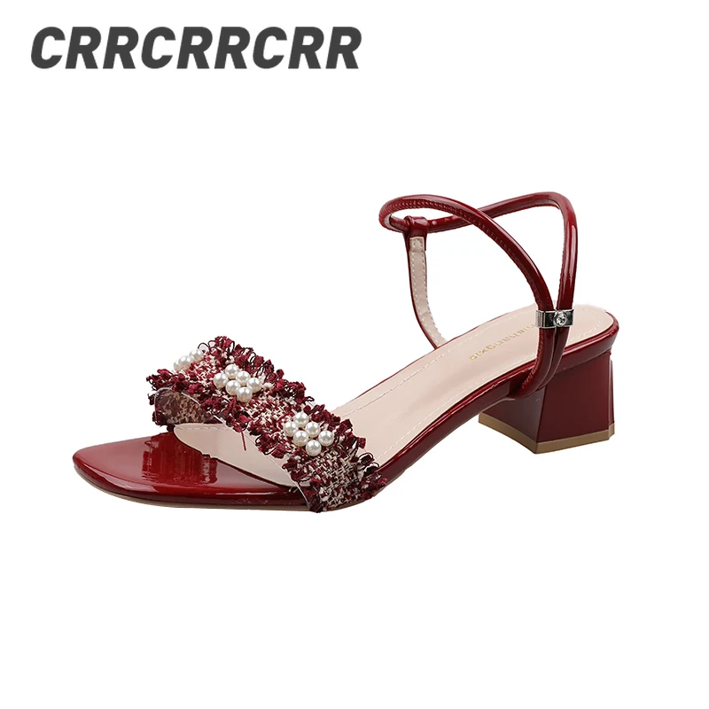 Туфли crrcrr женские с бахромой, модные мягкие однотонные красные удобные дышащие босоножки с жемчугом, с открытым носком, ручной работы, элегантные вечерние сандалии
