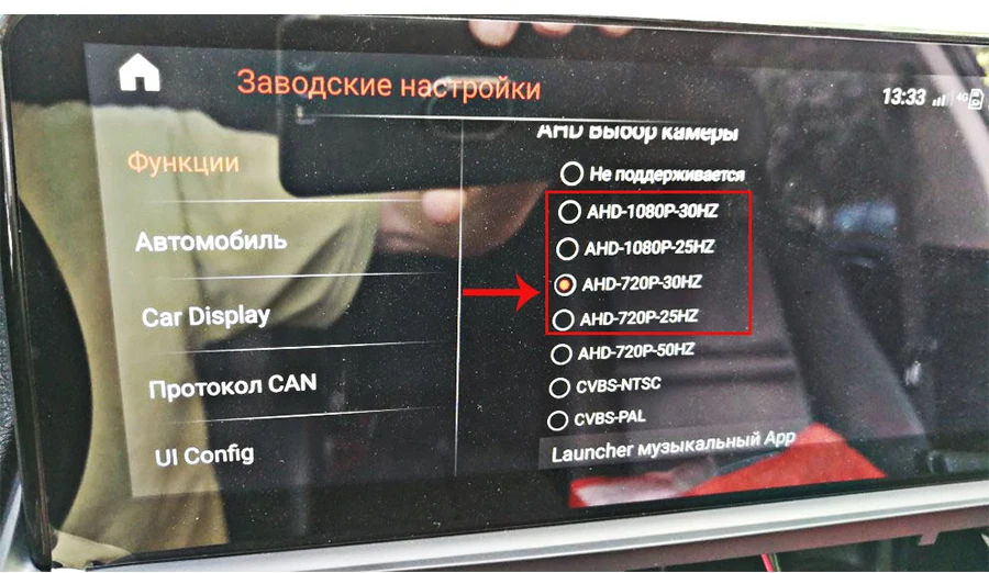 Если AHD не может быть выбран, AHD камеры не поддерживаются!