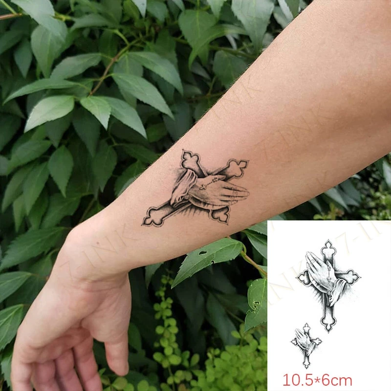 Водостойкая временная татуировка наклейка Крест Любовь Сердце Алмазный пион маленькое искусство татуировка на палец флэш-тату поддельные татуировки для мужчин женщин