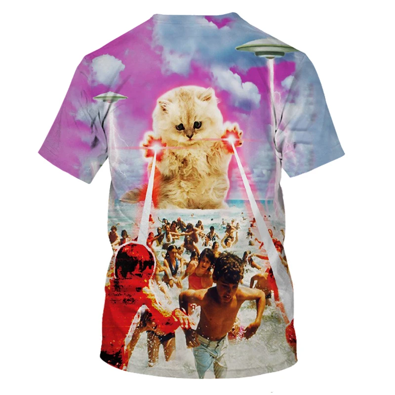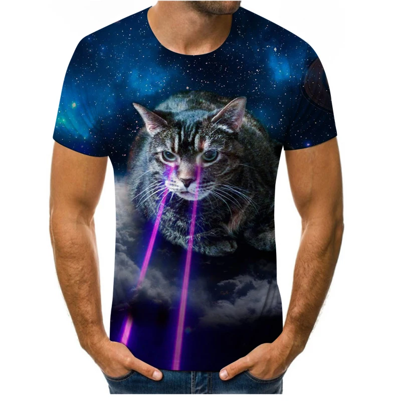 Летняя футболка оверсайз с 3D-принтом кошачий глаз для мужчин и женщин, забавная футболка с круглым вырезом и короткими рукавами
