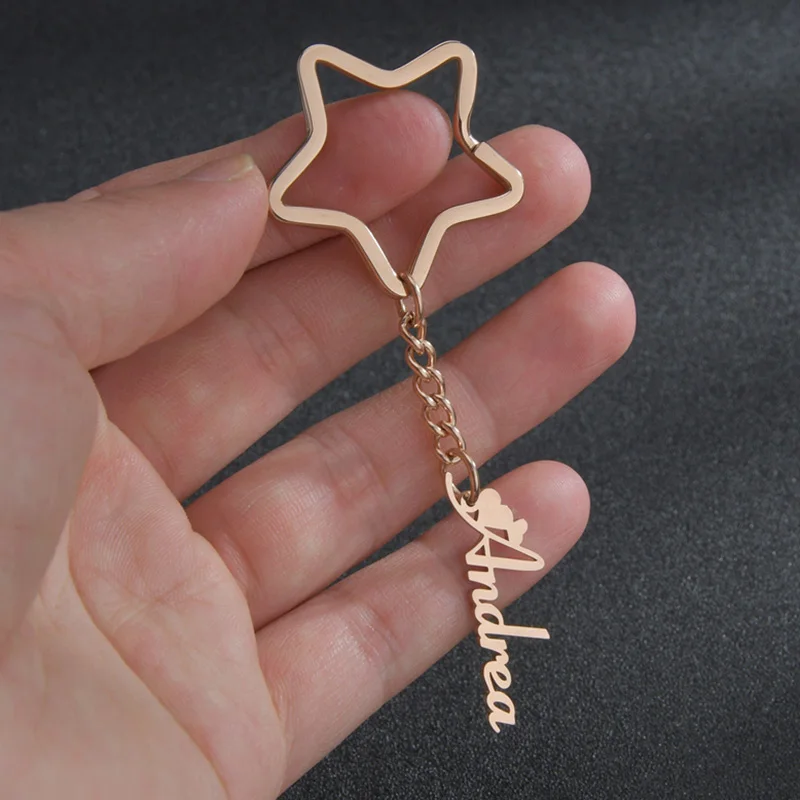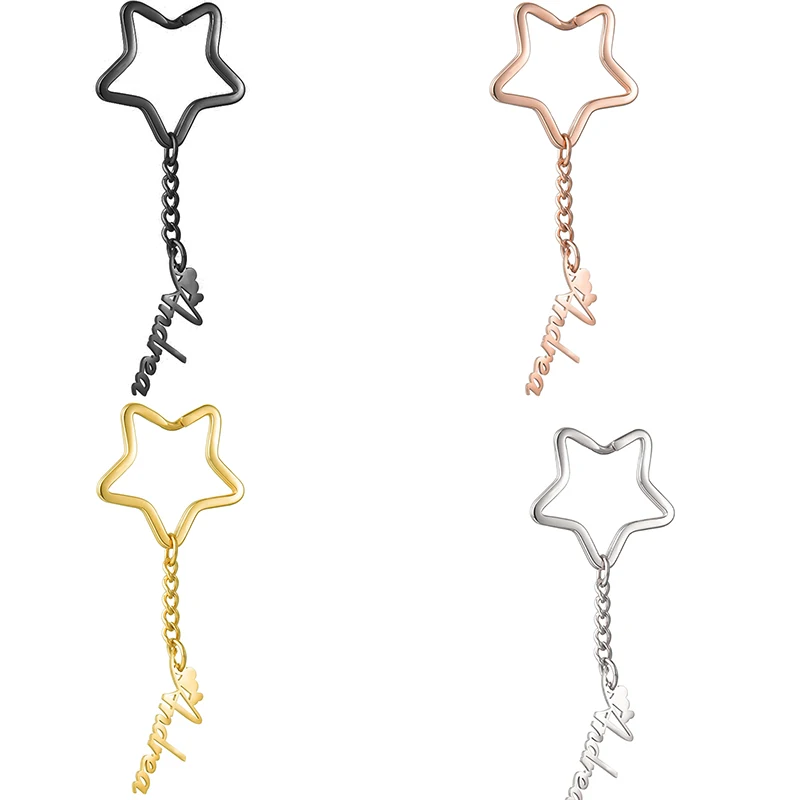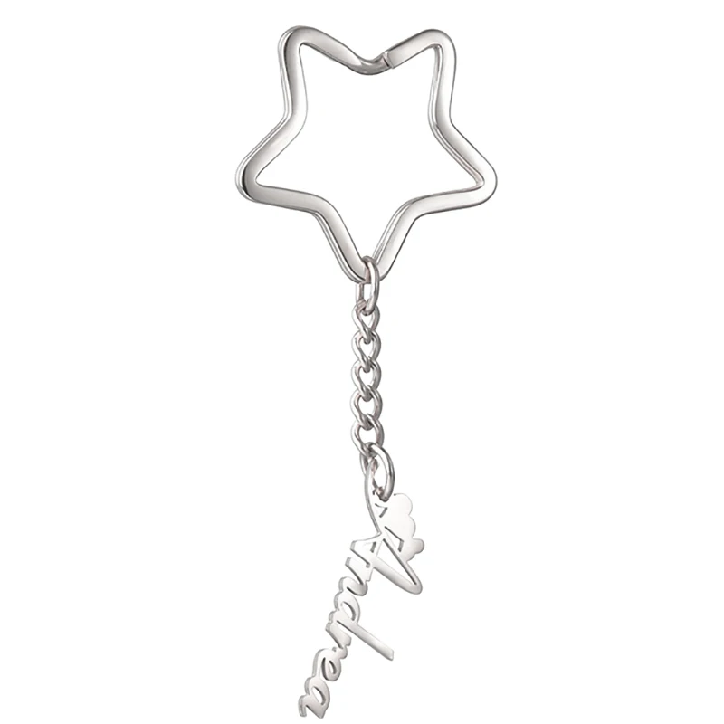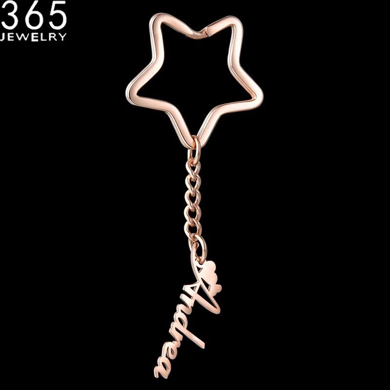 Брелок с именем на заказ, персонализированные брелки из нержавеющей стали с пятиконечной звездой и надписью, брелок для женщин и мужчин, ювелирные изделия, подарки на день рождения