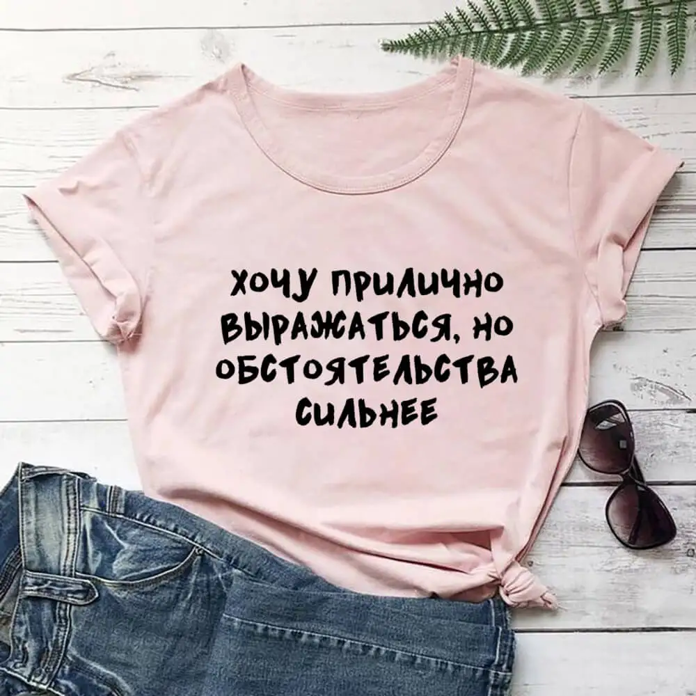 Эйухнем Женская футболка из 100% хлопка с русской кириллицей забавн...