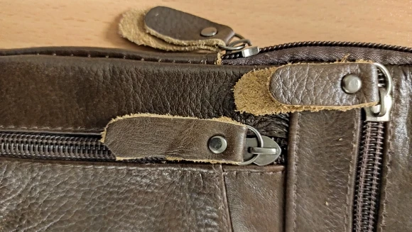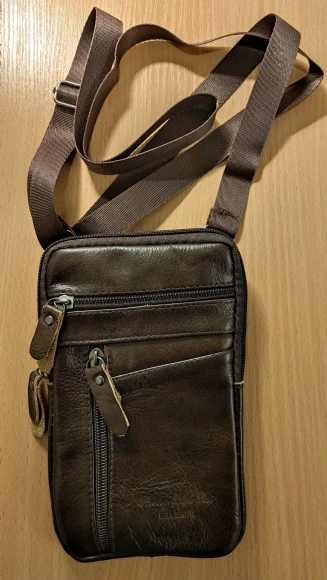 Кожа выглядит даже более качественной, чем на рекламном фото. Все молнии двигаются отлично. Шелковая ленточка слабовата, но я и собирался носить на поясном ремне. Отделения впору и для смартфона, и для небольшого бумажника. Все отлично!!! Служба DPD передала заказ через офис доставки - это гораздо удобнее, чем через курьера. Поэтому рекомендую AliExpress отказываться от курьеров, может даже снизить за счет этого цену?