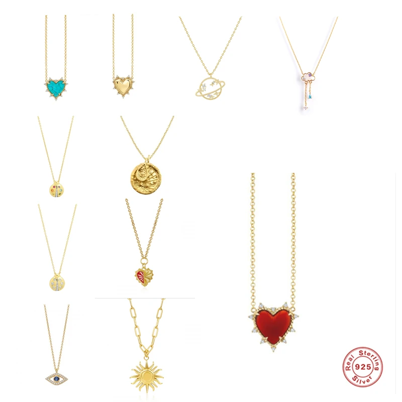 MC серебро 925 пробы ожерелье с подвеской простое Хрустальное циркониевое INS колье с цепочкой для вечерние цепочки ожерелье сердце/планеты чокер