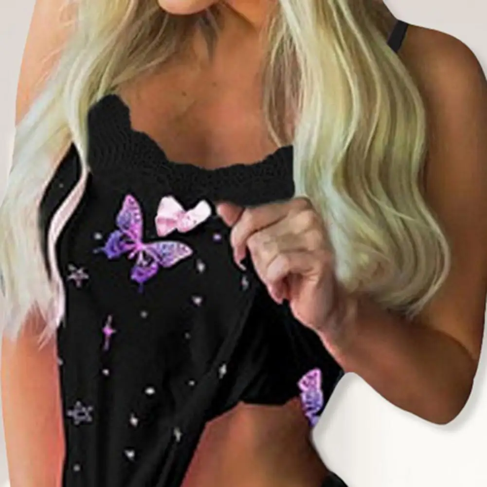 Пижамный комплект с принтом бабочки на бретельках женская пижама без рукавов с бантом для сна