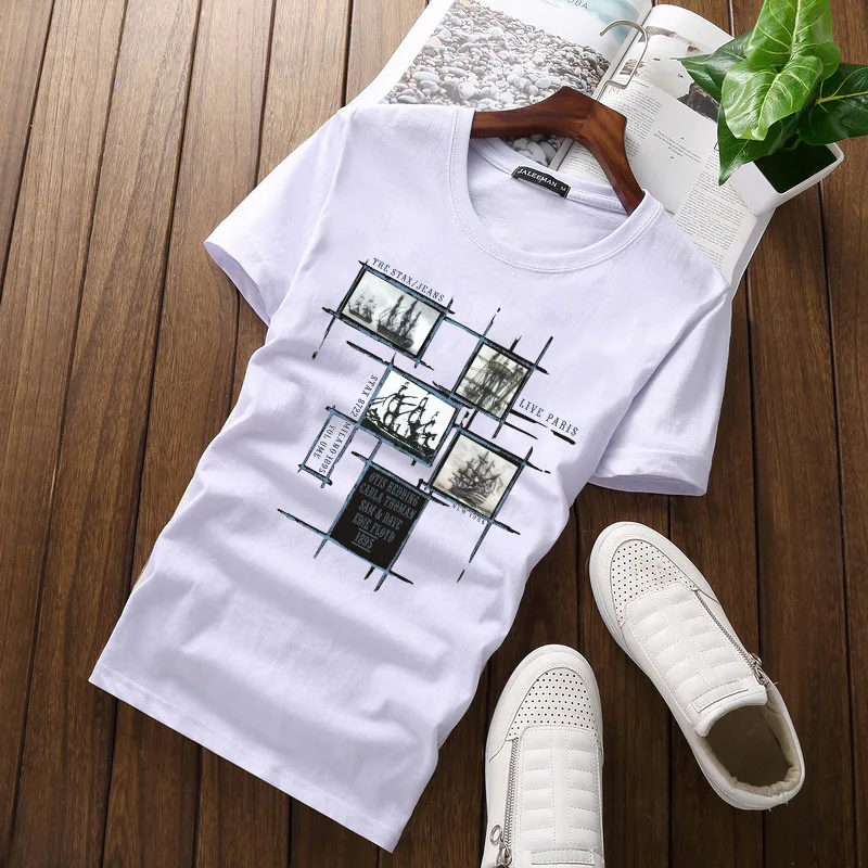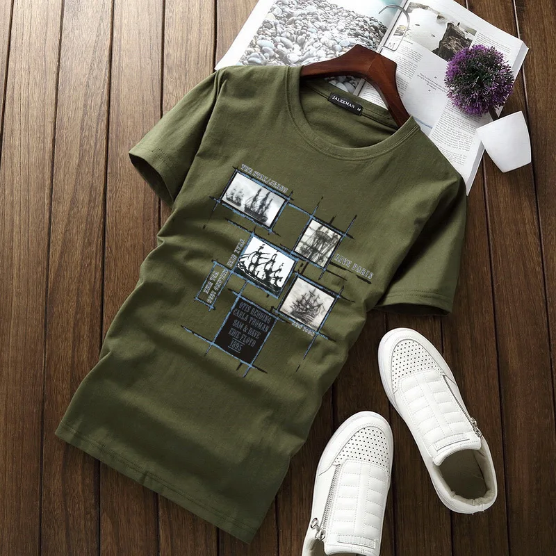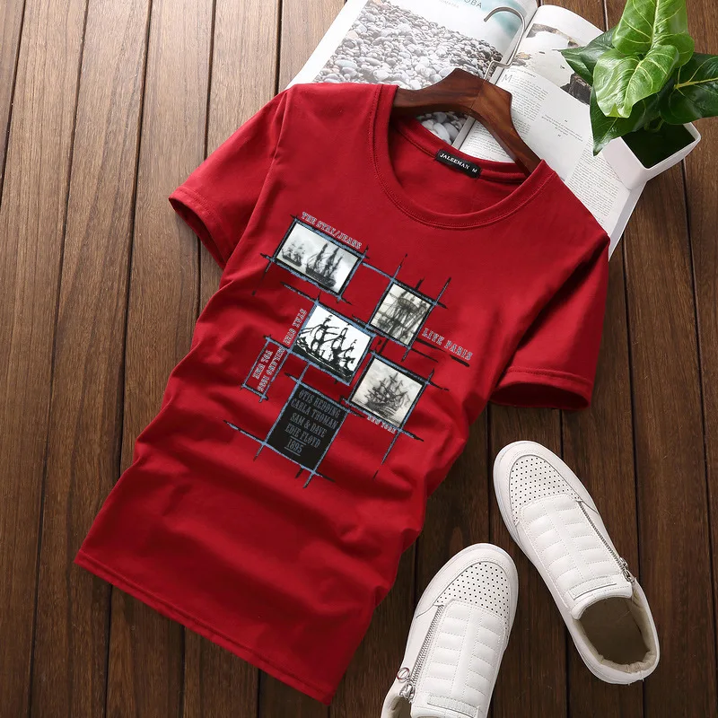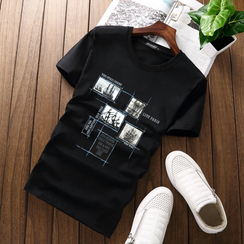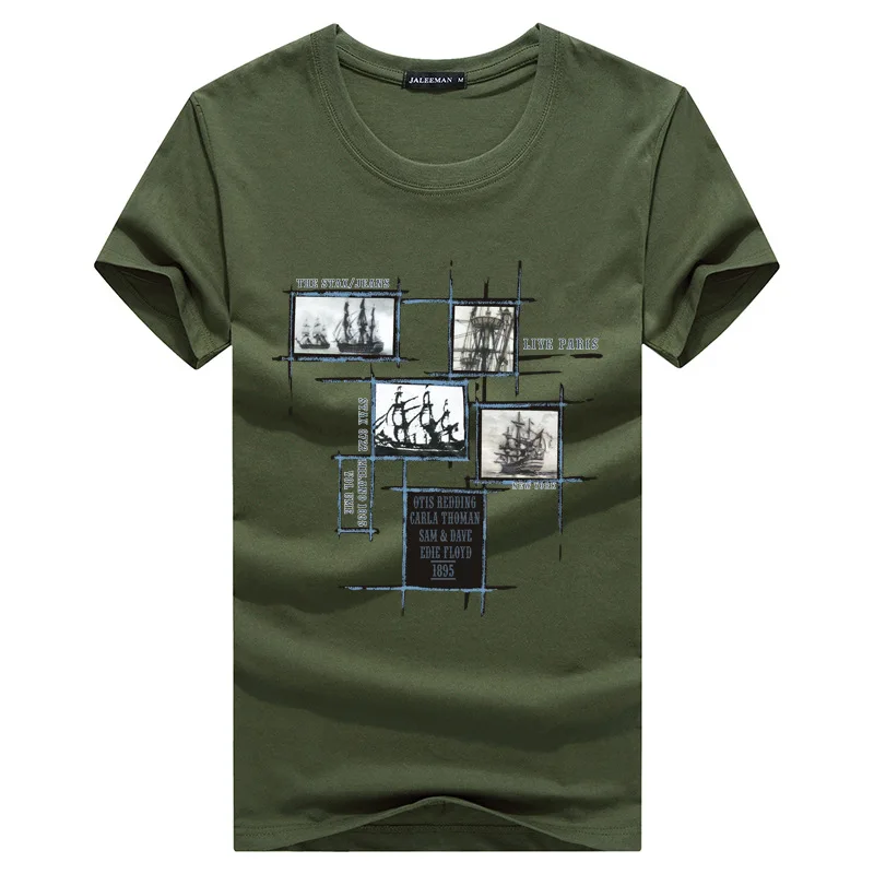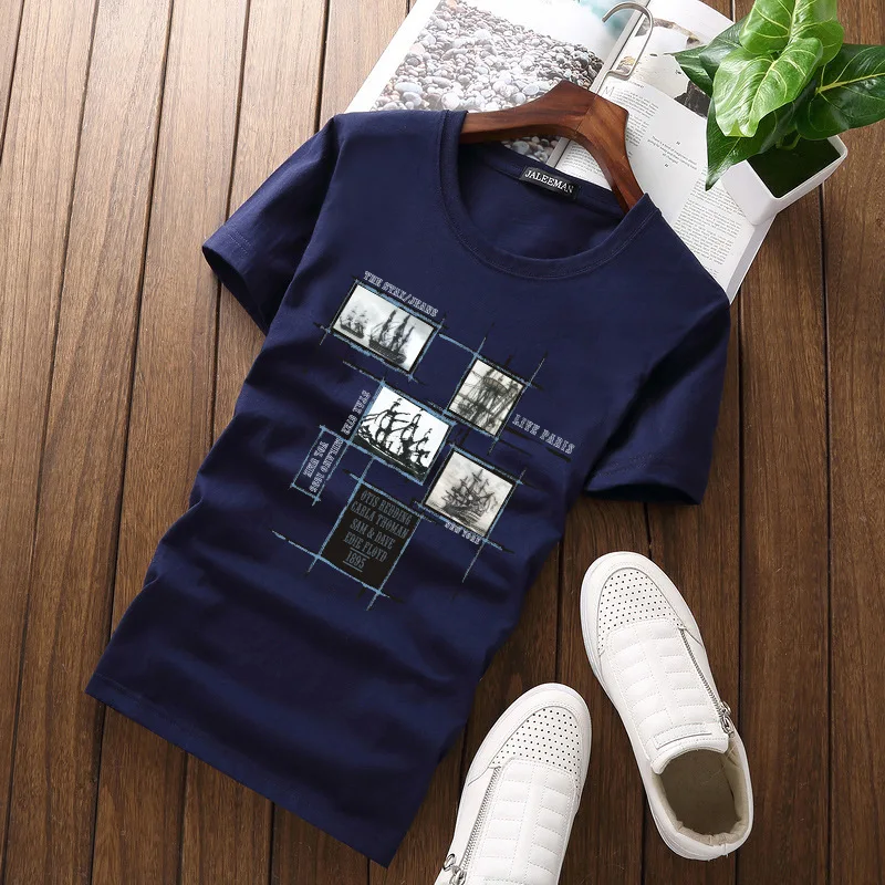 Мужская футболка с короткими рукавами, повседневная мужская футболка в стиле хип-хоп, с принтом лодки и круглым вырезом, лето 2021