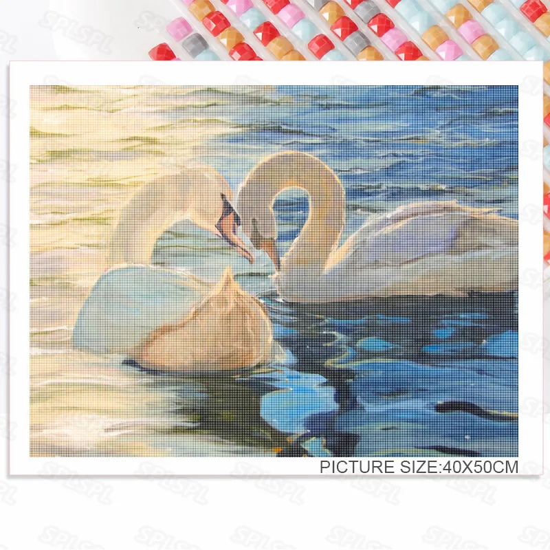 Алмазная живопись сделай сам, покрытая белыми перьями и светлым реб...