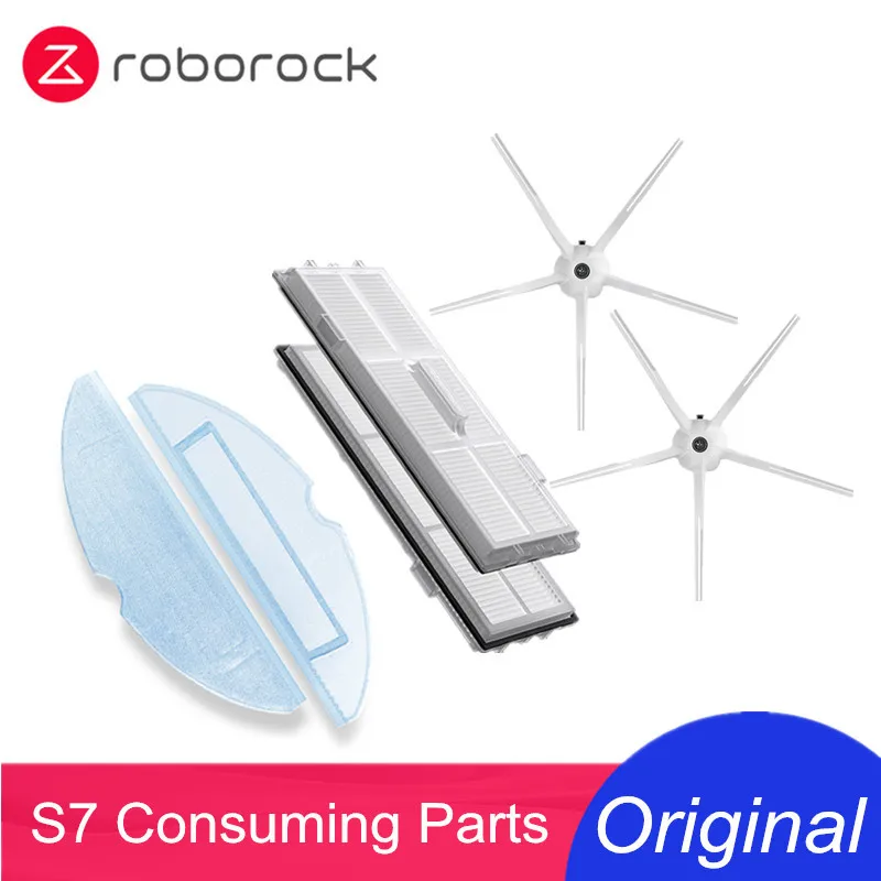 Аксессуары для робота-уборки Roborock S7, моющаяся салфетка для швабры с фильтром, 5 рук, боковая щетка, запасные части, оригинал