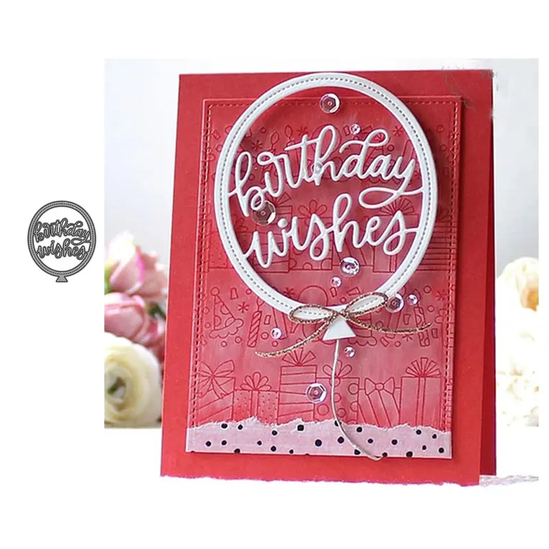 Металлические штампы в форме шаров с пожеланиями на день рождения, для скрапбукинга, для изготовления трафаретов, листовая форма, декоративный шаблон