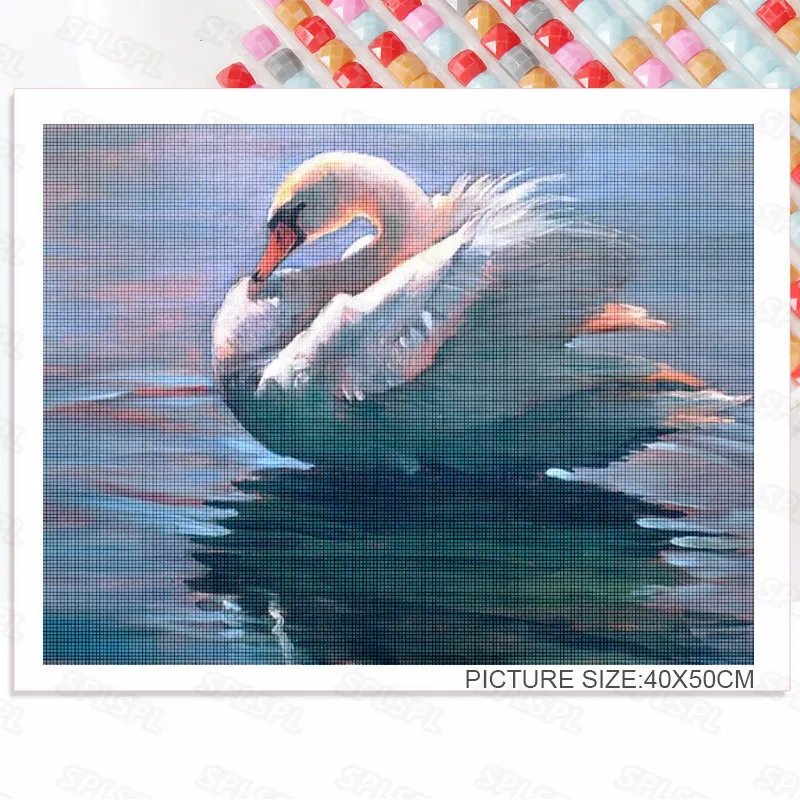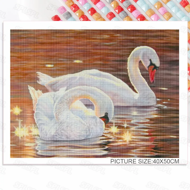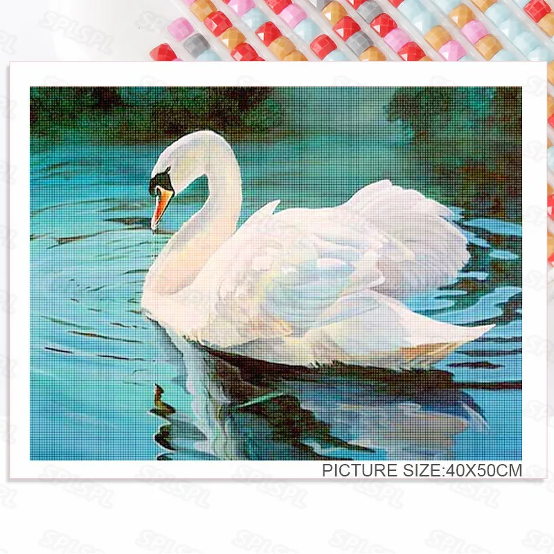Алмазная живопись сделай сам, покрытая белыми перьями и светлым реб...