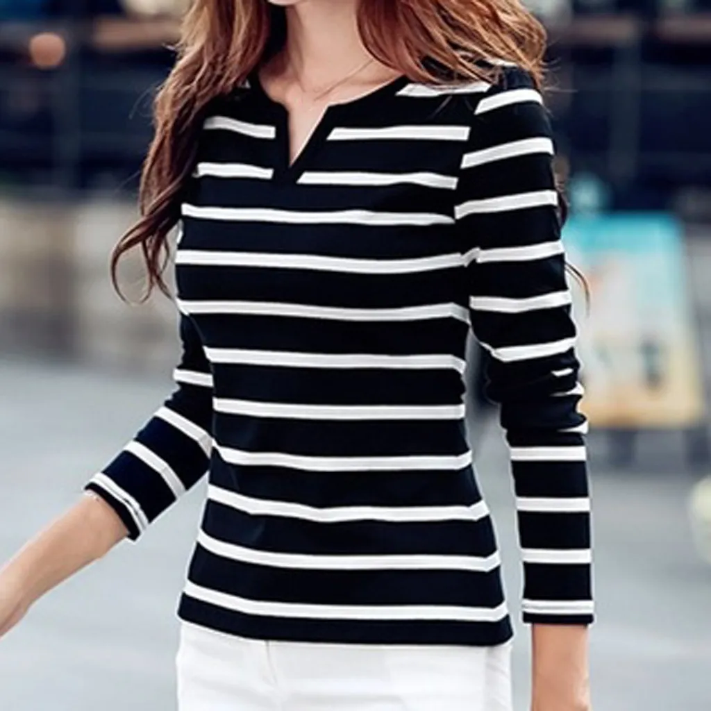 Блузка женская хлопковая с полосатым принтом, с длинным рукавом