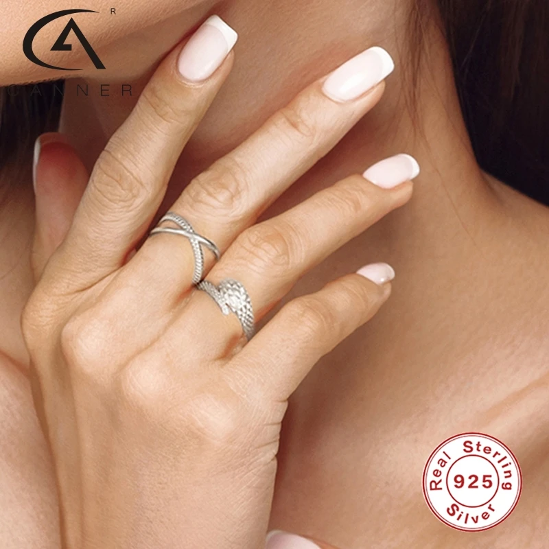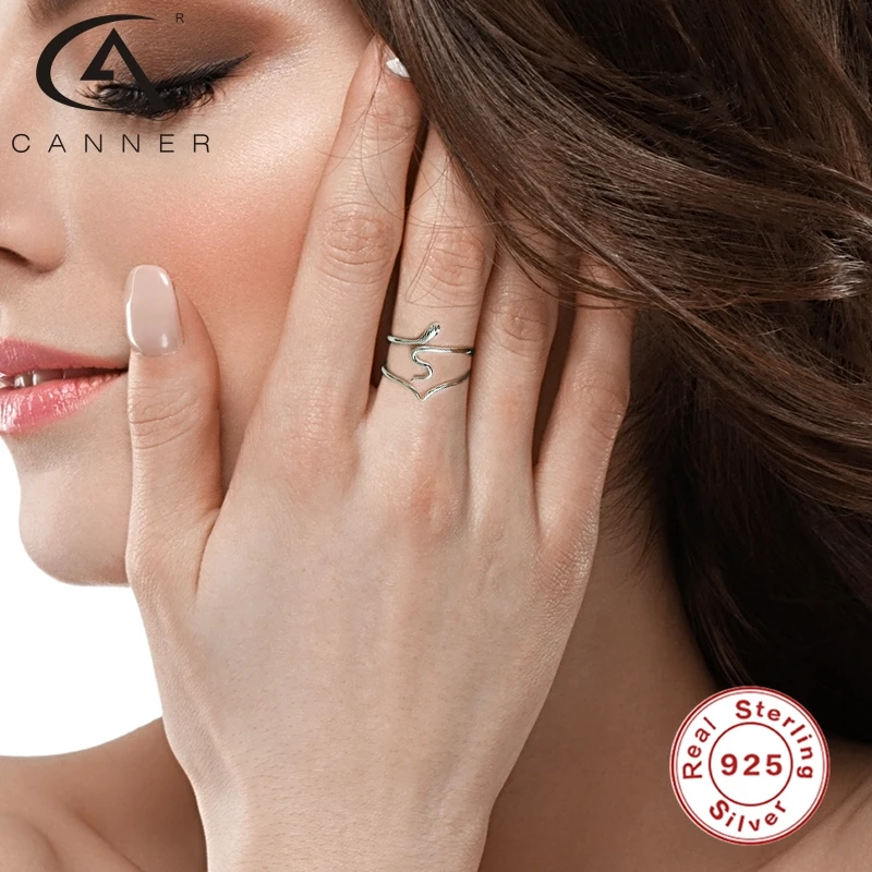 Женское кольцо в форме змеи CANNER, серебро 925 пробы, Открытое кольцо для подростков, готические кольца в стиле хип-хоп, ювелирные изделия, 2021