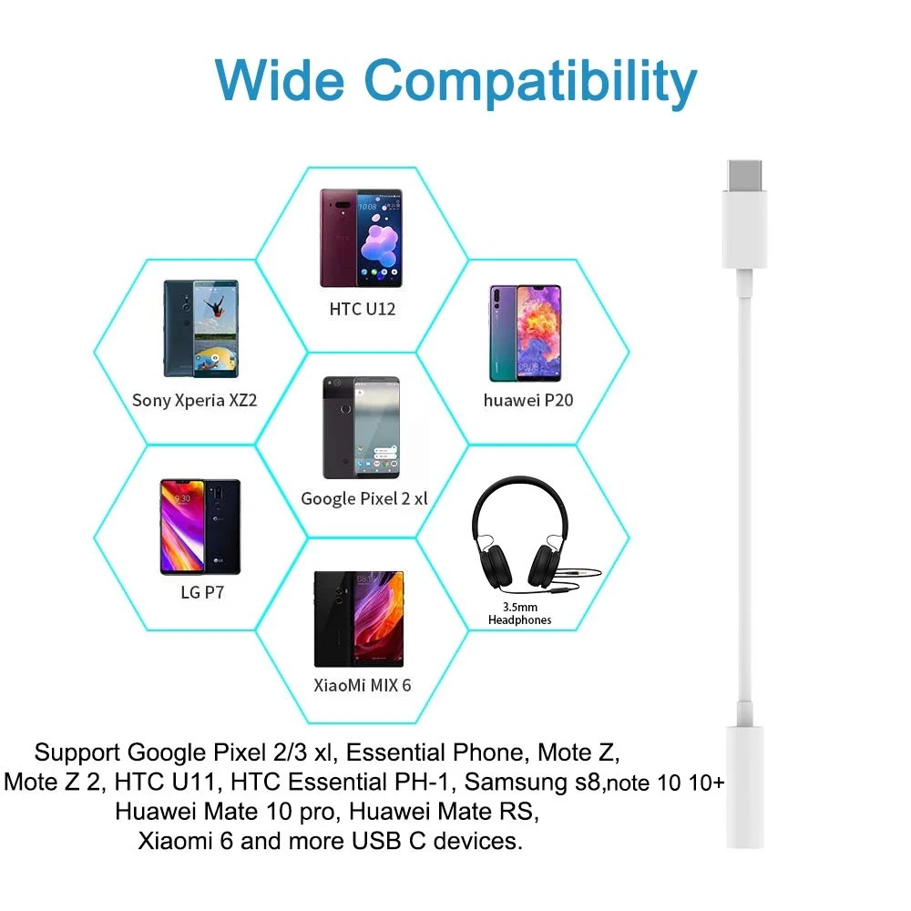 Описание 1. Прослушивание музыки и вызова: кабель-Переходник USB C на 3,5 мм Aux аудио разъем для наушников Pixel 2 адаптер позволяет вам наслаждаться музыкой с наиболее USB Type-C мобильных телефонов, а также поддерживает телефонные звонки и дистанционный пульт функция. 2. Встроенный высококачественный чип Realtek DAC Hi-res: это Высококачественный чип преобразования звука, он может преобразовывать цифровые аудиосигналы в аналоговый звук, поддерживает оригинальное качество звука ваших наушников. 3. Отличный аудиовыход: отличный аудиовыход: Этот кабель aux принимает DAC, Hi-res и бескислородную медь, обеспечивает разрешение 44K/192 кГц, 16/24 бит, высокое качество звука и отличное качество звука. 4. Новый дизайн: Медь провода внутри защищенный алюминиевой фольги, более износостойкая; Металлический корпус и могут быть отменены и ТПЭ делает коррозионная стойкость, только в том случае, высота каблука 10 см в длину, 0,5 унций, этот usb c 3,5 мм аудио разъем кабель-переходник, очень легко и удобно носить с собой, вы можете поместить его в ваш карман для кошелька, мешок и других местах. 5. Совместимые модели: Поддержка большинства мобильных телефонов с usb-портом C, такими как Google Pixel 2 XL,Pixel 2, HTC U11, Motorola Moto Z,Huawei Mate 10,Samsung Galaxy Note 8, s8 10 10 +, Huawei Mate 10, Xiaomi, Nexus 6P/5X, Nokia Lumia OnePlus MateBook или более Новейший дизайн 1. Первая в мире Поддержка высокого разрешения цифрового звука, 3,5 мм для наушников 2. Поддержка максимальной частоты дискретизации 192k/24 бит 3. Снабжен активным шумоподавлением и басовым эффектом 4. Поддержка OMTP, CTIA гарнитура система автоматической идентификации 5. Поддержка функции управления линией наушников 6. Интерфейс Type c для мобильных телефонов, все поддерживает аудио, Qualcomm 8 серии выше, процессоры, Все поддерживают функцию вызова Посылка включает в себя: 1 х кабель-Переходник USB C на 3,5 мм Aux Автомобильный цифровой аудио адаптер 1 x Розничная коробка